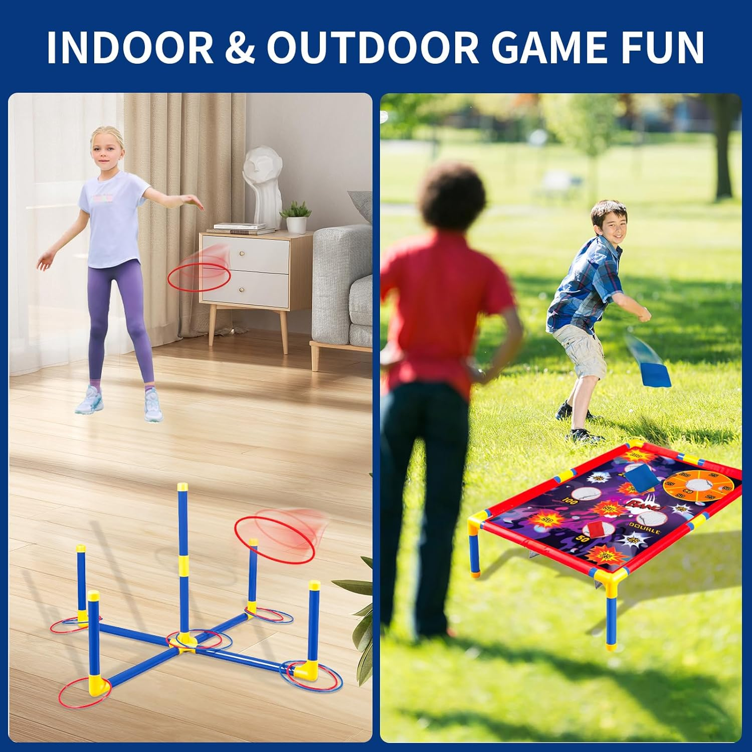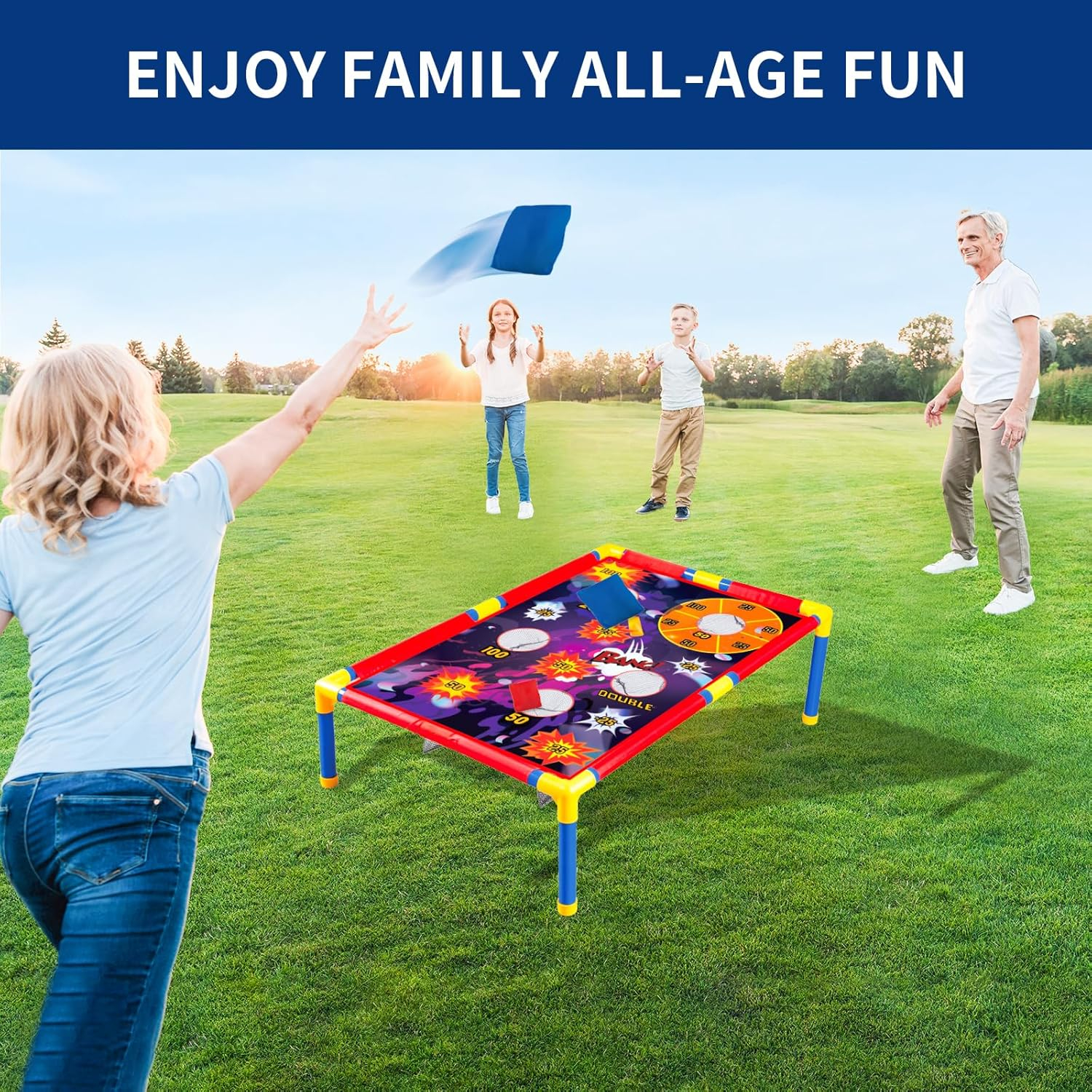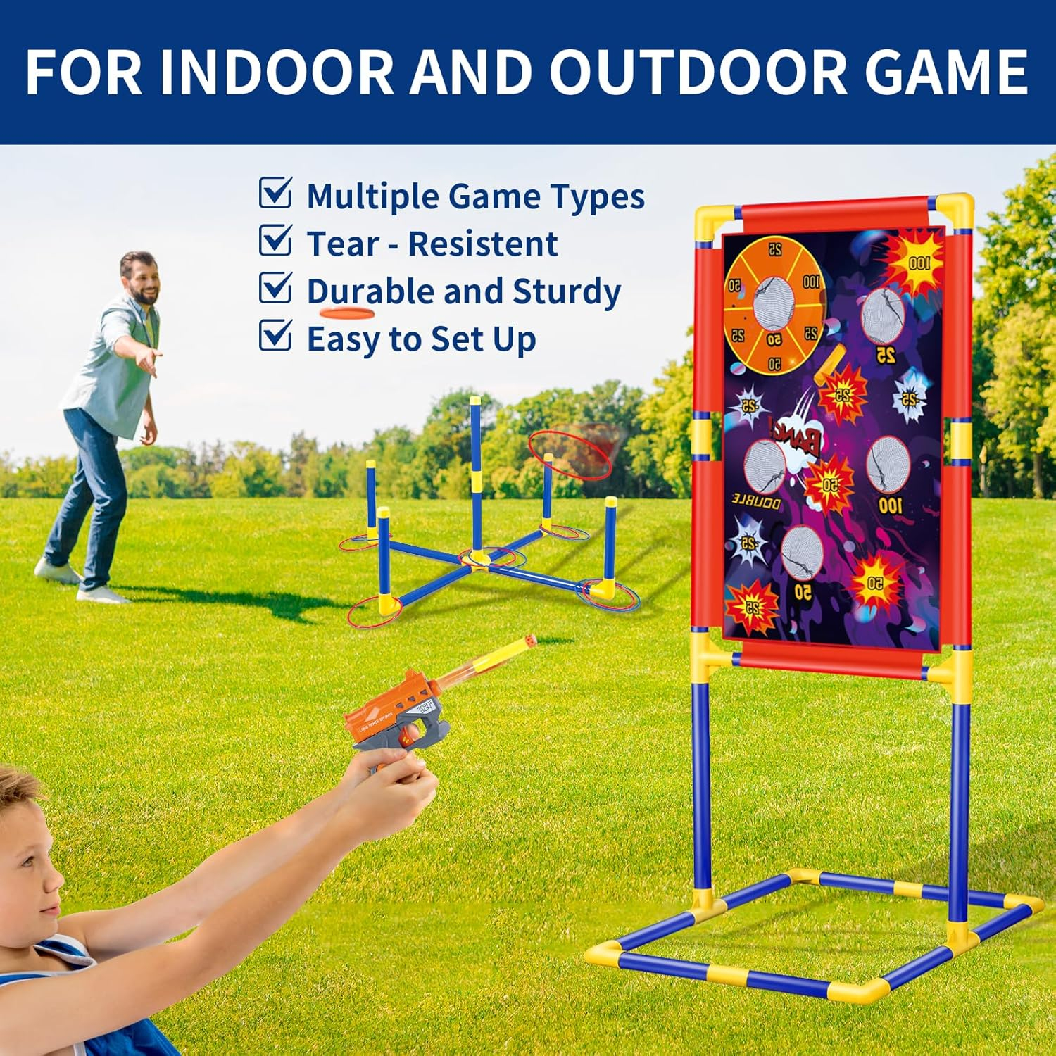 3-IN-1 MULTI-JOC STAND FOR ENDLESS FUN -Acest kit versatil de joc în aer liber în aer liber poate fi asamblat ca o țintă de aruncare a sacului de fasole, ținta de fotografiere sau ținta de joc de tosing inel. (Accesia de stand este concepută pentru un singur joc la un moment dat) Perfect pentru joacă în aer liber în grădină, curți sau parcuri, oferă ore de divertisment pentru copiii care iubesc jocurile active
