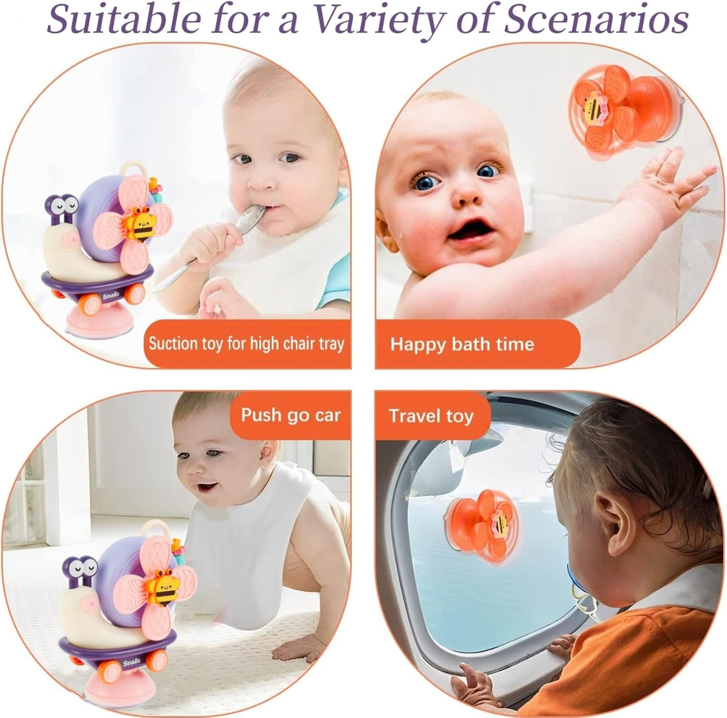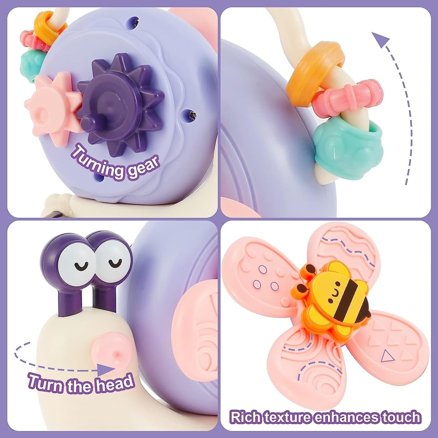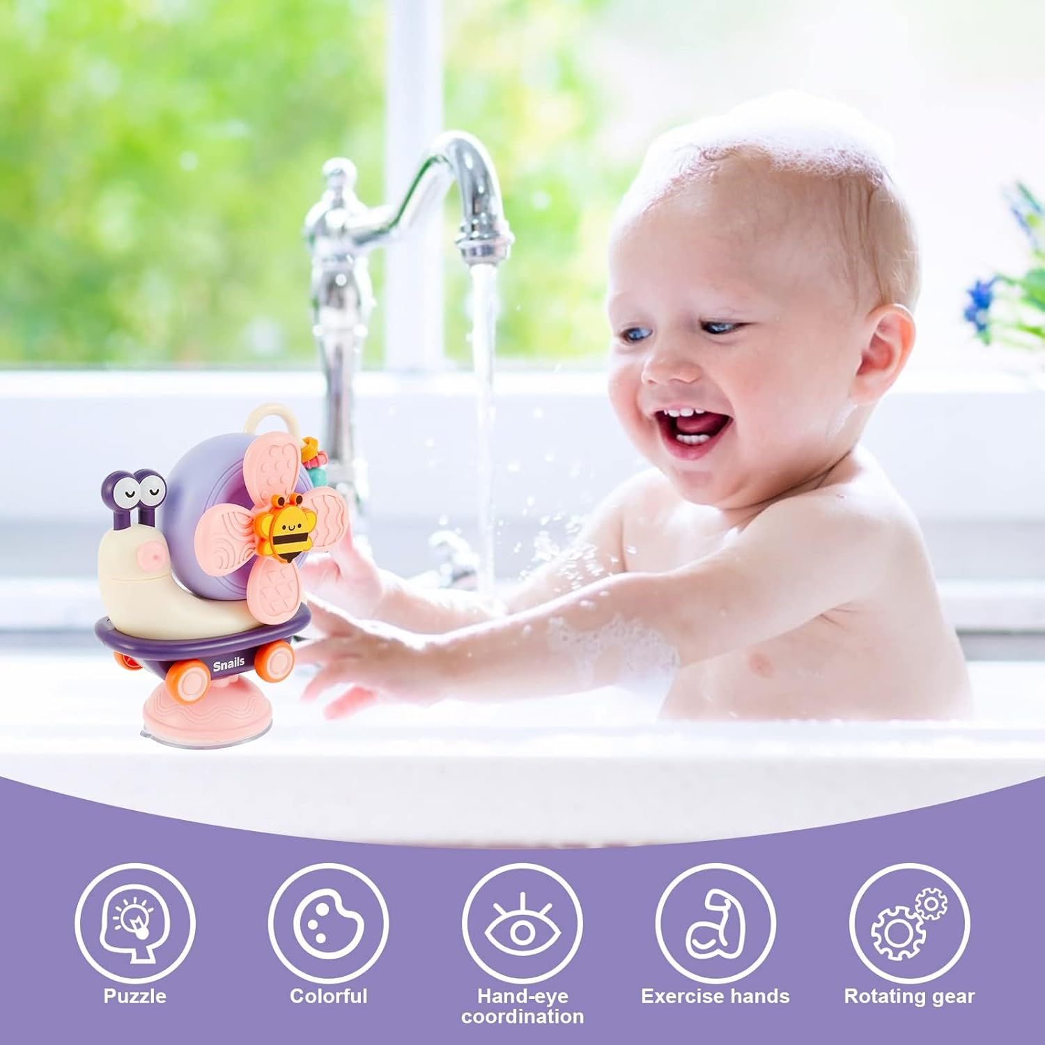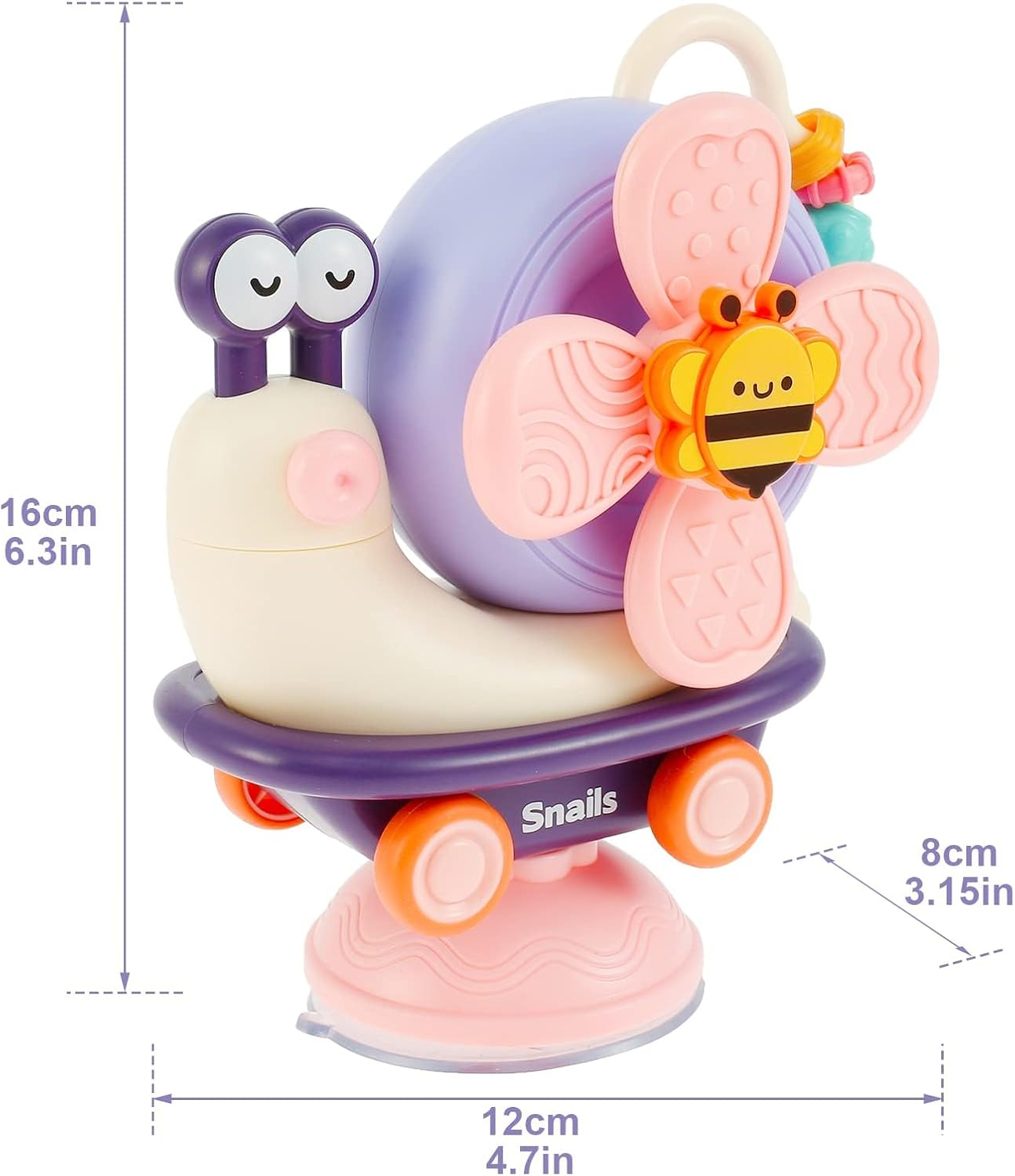 Deplasată pentru o Varietate de ScenareosAUn mașină de melc drăguță de mers pe jos continuă să se miște, încurajează copilul să se târască și să prindă. Lipiți-l de perete sau de cadă și rămâneți bine, timp de baie fericit. Sau să lipească geamul mașinii ca jucării de călătorie, să păstreze copilul liniștit cu jocul.