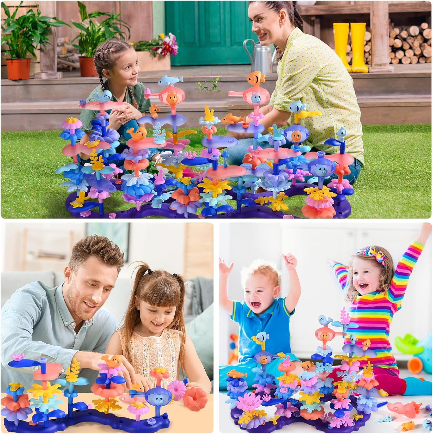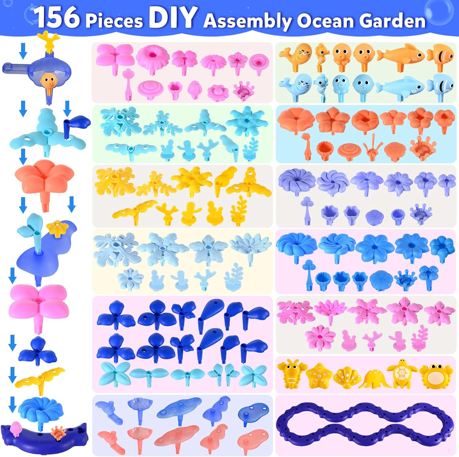 • Setul de joacă Ocean Flower conține 156 de accesorii și este suficient de colorat pentru a permite atenției copiilor să se joace ore întregi de timp ușor, pentru a-și construi confortabil propriul regat de flori frumos! Jucăriile pentru a construi o grădină sunt potrivite pentru copiii care doresc să se joace în orice anotimp și în orice loc, cum ar fi în camera de zi, în baie, pe plajă sau în parc.