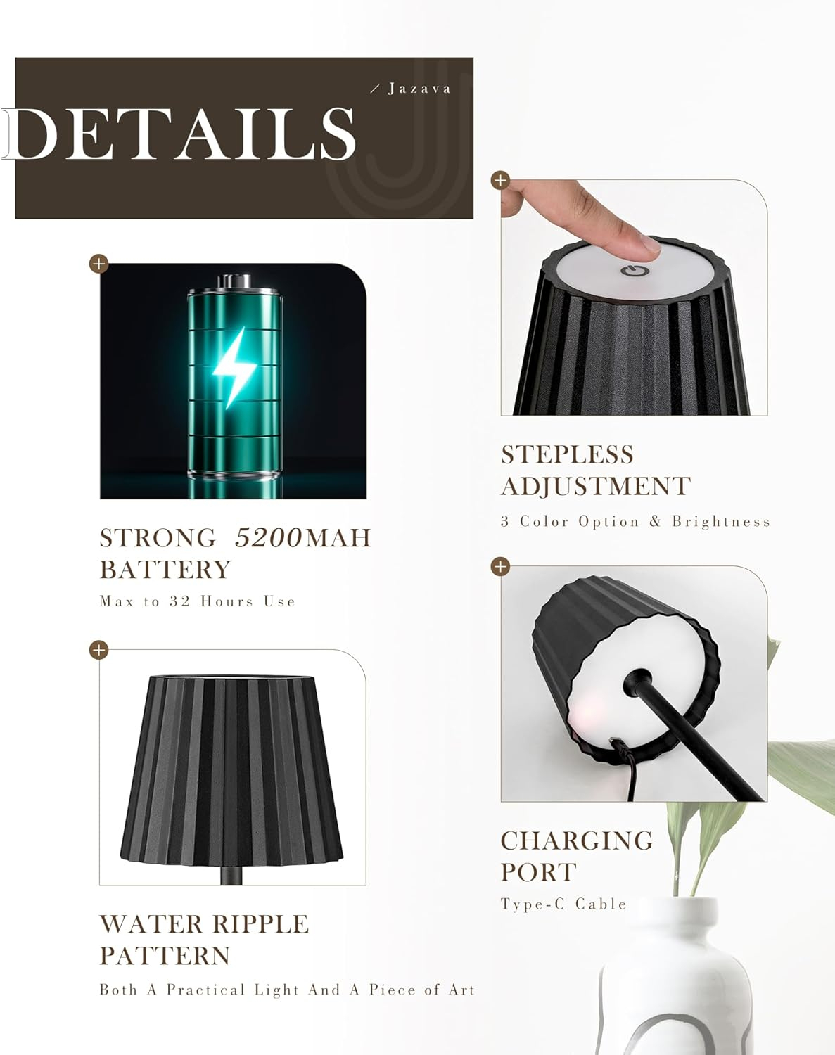 Controlul inteligent al atingerii - Modern și ușor de utilizat: datorită suprafeței tactile extrem de sensibile, lampa poate fi ușor pornită / oprită și poate regla cu precizie luminozitatea și temperatura culorii. O simplă atingere este suficientă - pentru controlul instant al luminii fără ocoluri.