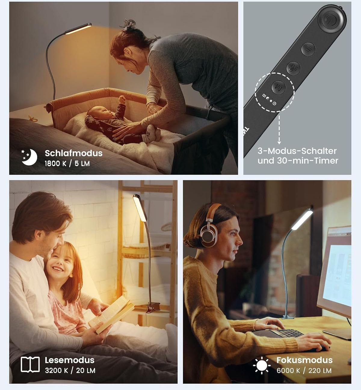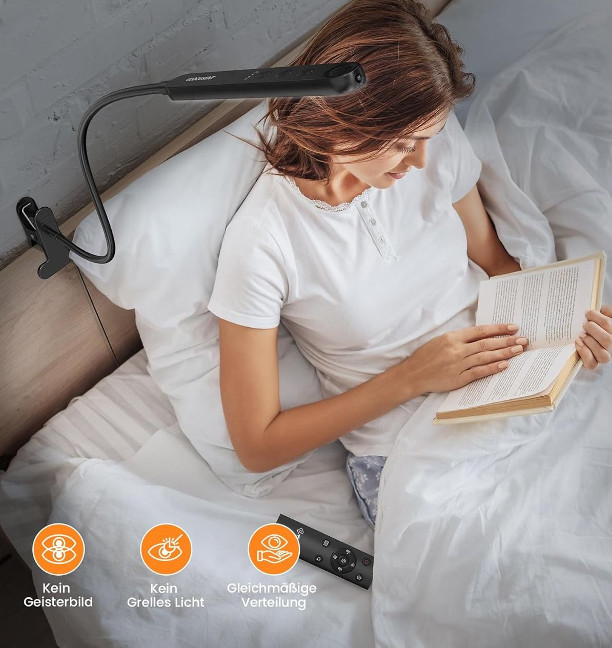 Această lumină de prindere are 38 de margele LED de înaltă calitate, care sunt aranjate științific pe capul lămpii și oferă iluminare uniformă și luminoasă. 38 LED-uri de înaltă calitate asigură iluminare perfectă, fără pâlpuri și fără strălucire. Poate fi folosit ca lampă de citire clampabilă, cu moda specială de chihlimbar (1800K), care protejează ochii de încordare și oboseală. Ideal pentru lampa de birou și citirea în pat.
