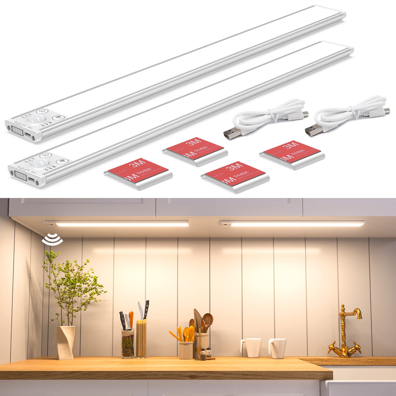 Lumină LED pentru dulap cu senzor de mișcare, 2200 mAh reîncărcabilă prin USB 40CM 2 buc