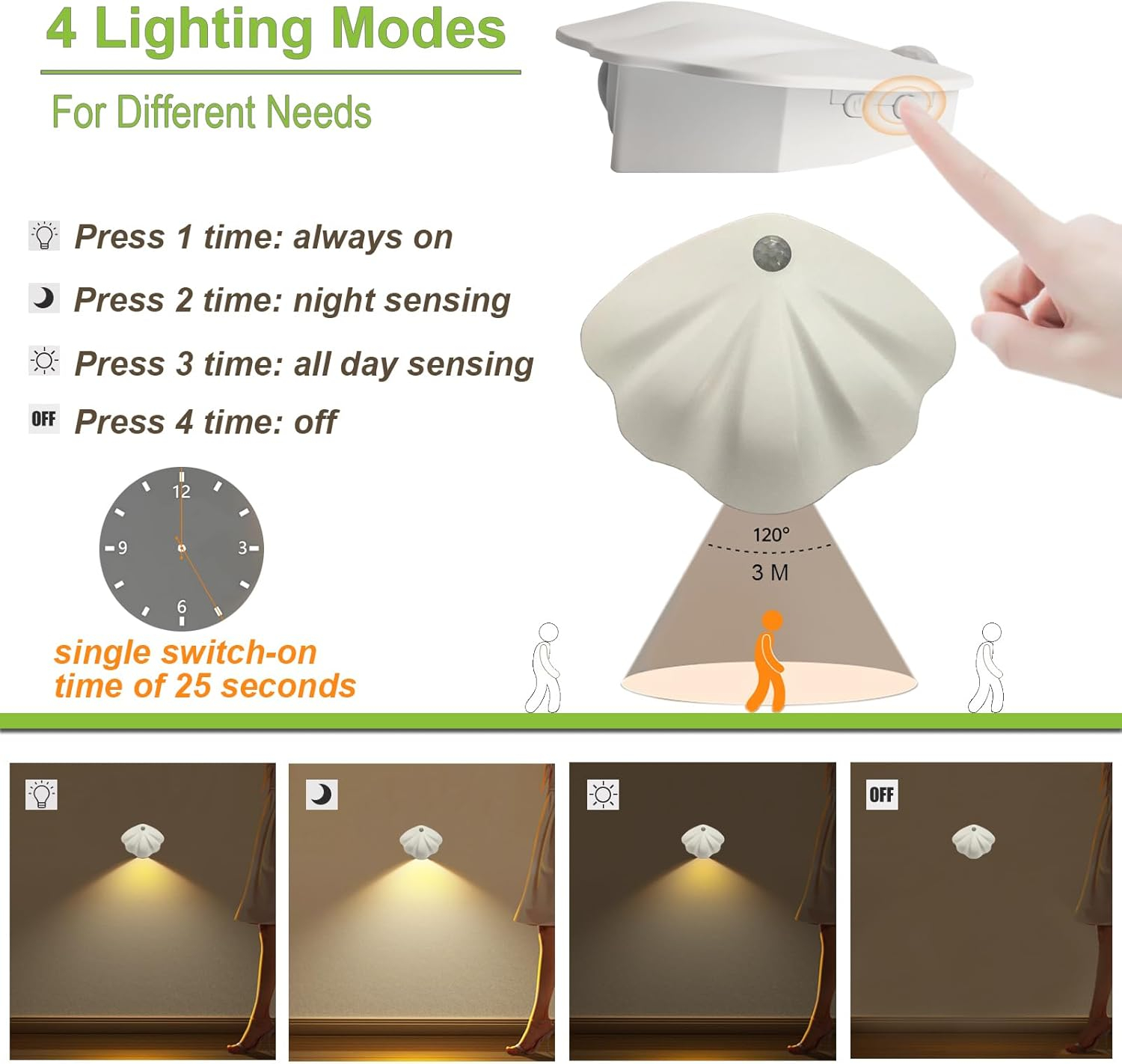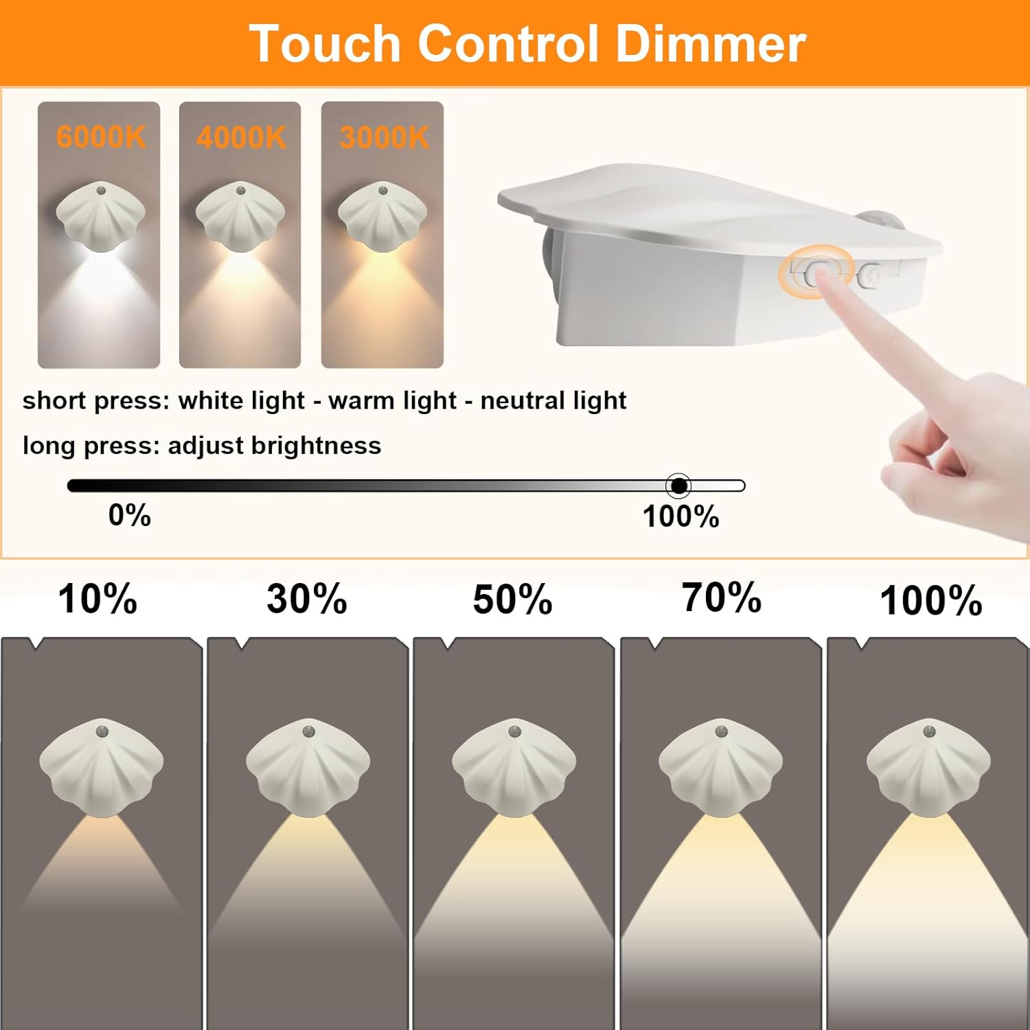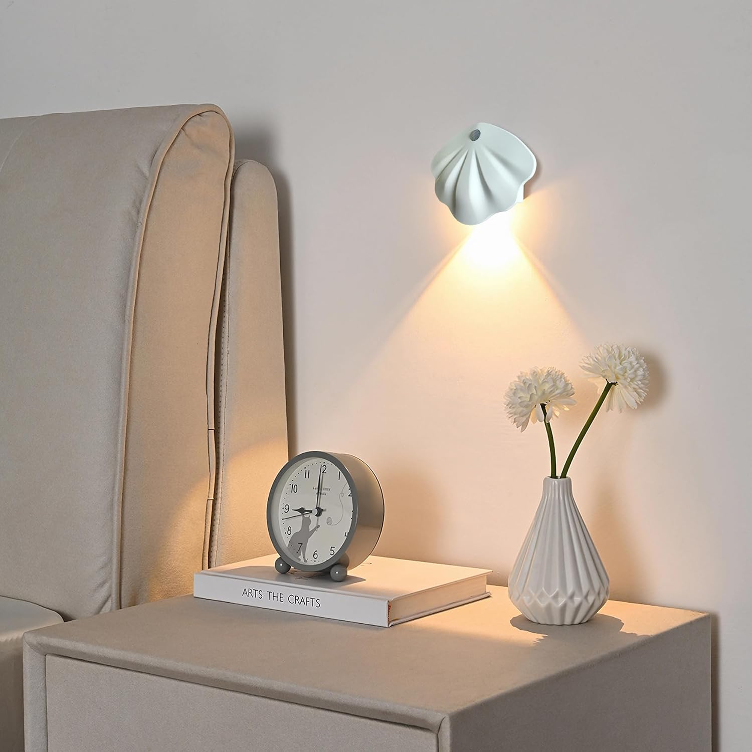 Lumina de perete a bateriei wireless: lampa de perete LED este acționată de baterie și nu necesită cabluri. Datorită bateriei încorporate de 1200 mAh, funcționează ușor și flexibil. Lumina de perete LED cu designul său în formă de coajă este decorarea perfectă pentru camera sau pepiniera pentru copii.