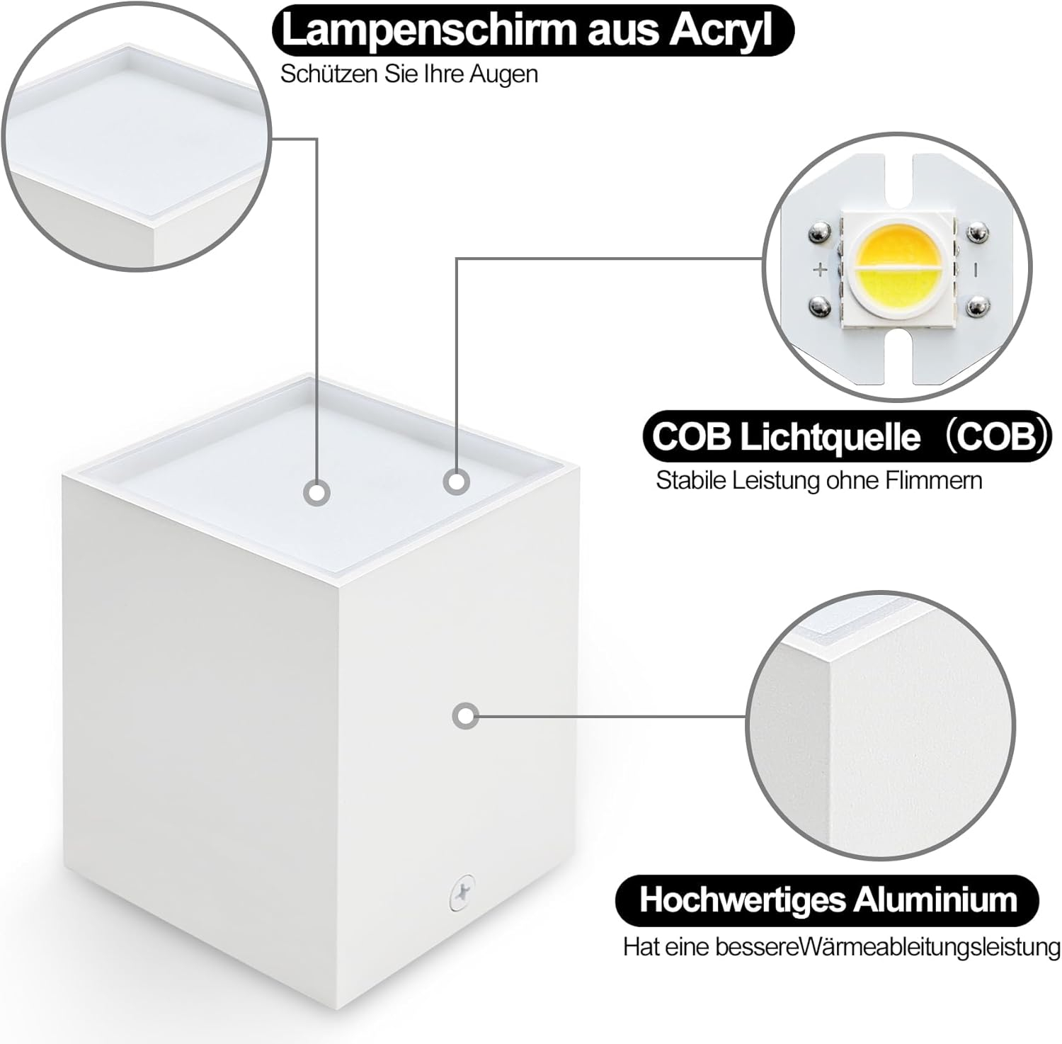 • Ușor de instalat: lumina reflectoarelor montată pe suprafață cu LED-uri poate fi montat pe orice tavan și este o alternativă perfectă la reflectoarele încastrate. Petele de tavan montate pe suprafață pot fi conectate direct la alimentarea de rețea 230 V fără a fi nevoie de un transformator suplimentar.