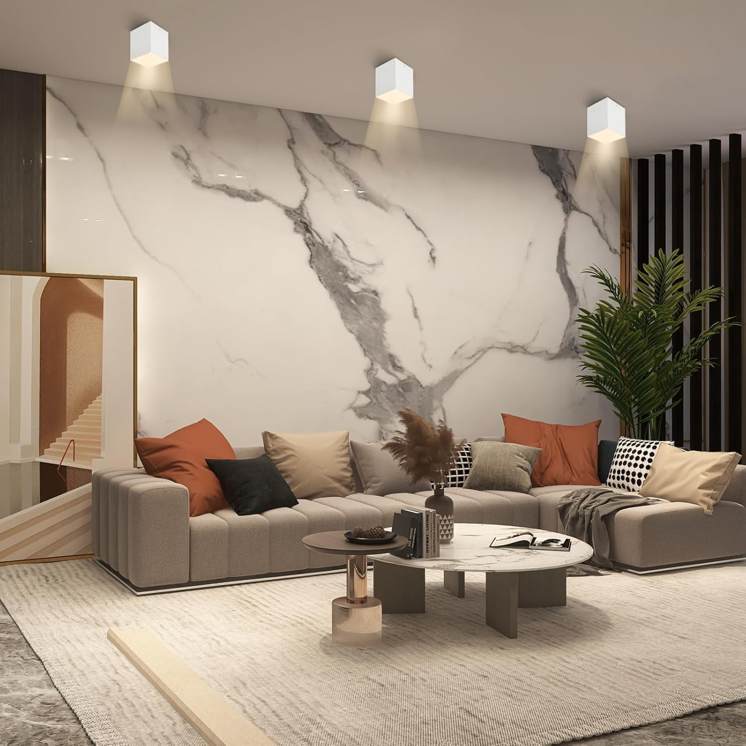 • Aplicație largă: locul nostru montat pe suprafață poate focaliza lumina puternică, perfect pentru lămpi decorative, potrivite pentru camera de zi, sufragerie, coridor, studio, cafenea, expoziție etc. pentru a crea efecte vizuale diferite.