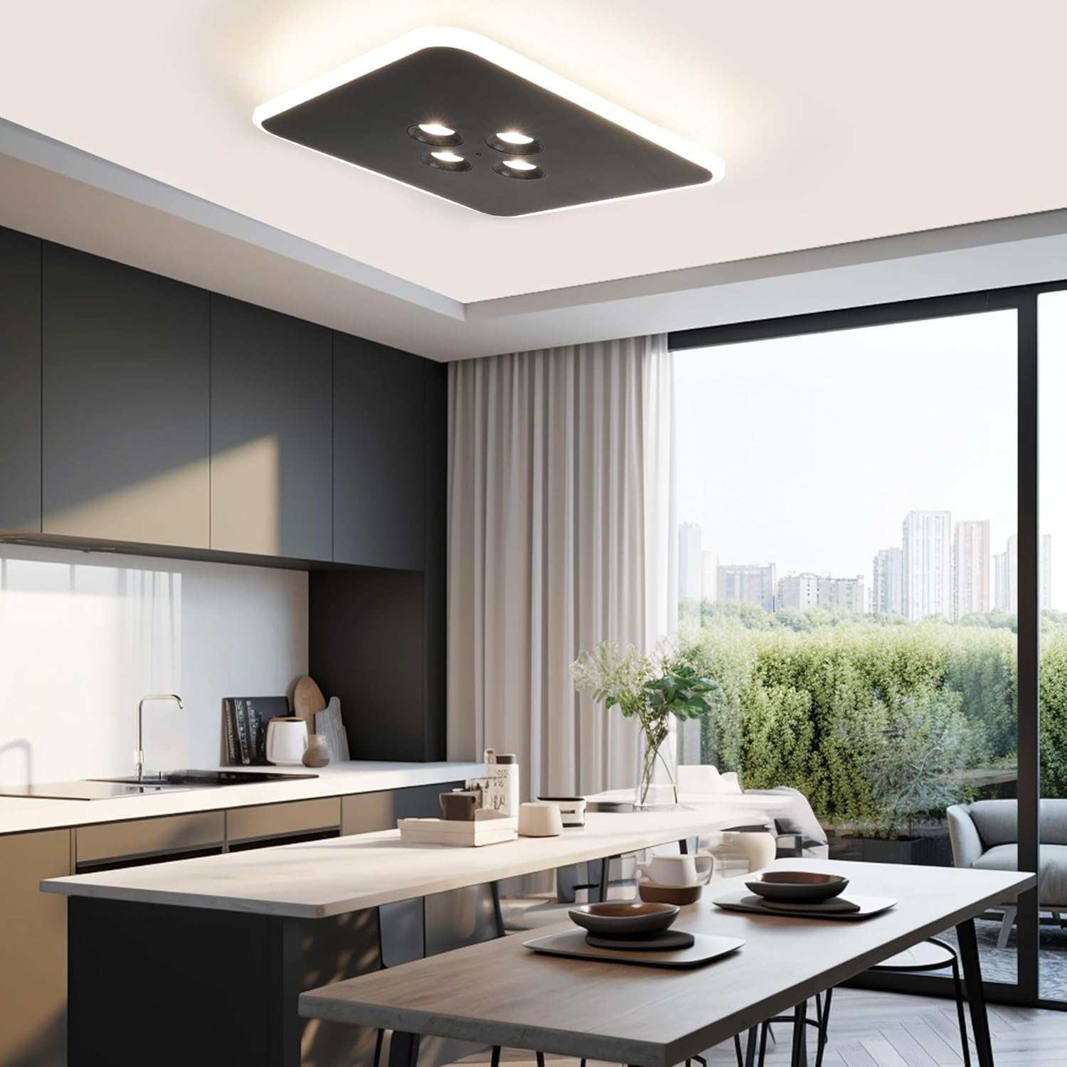 • Caracteristici de design: Lumina de tavan cu LED-uri pătrate negre, cu designul său simplu și modern, devine punctul culminant al oricărui spațiu interior. Corpul ușor este subțire și simplu, oferă oamenilor un sentiment de ușuritate suspendat în spațiu. Lumina moale din jurul acestuia completează iluminarea principală din centru, umplându-ți dormitorul cu o atmosferă caldă strălucitoare.