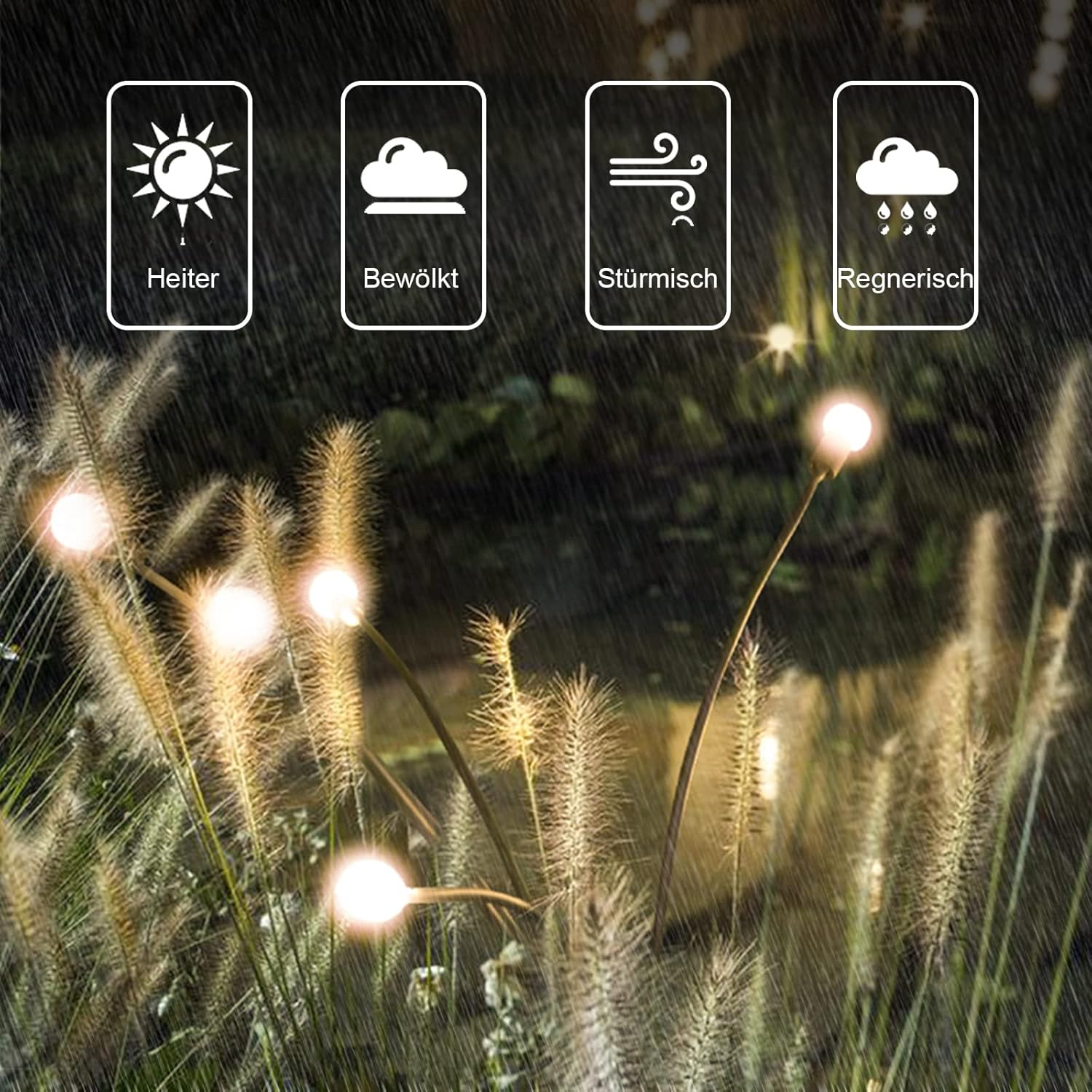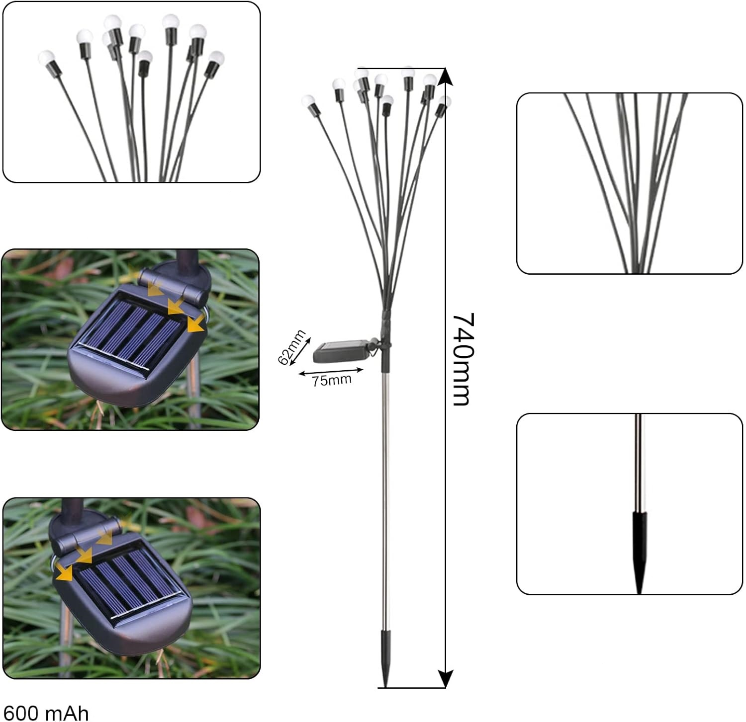 IP65 rezistent la apă și rezistent la căldură: lumini solare de stingere a incendiilor din material IP65 impermeabil, impermeabil în aer liber și funcționează perfect chiar și în vreme rea. Deci, nu trebuie să vă faceți griji cu privire la lumina solară a licuricii care se ud în zilele ploioase și casa și grădina dvs. vor străluci în fiecare noapte.