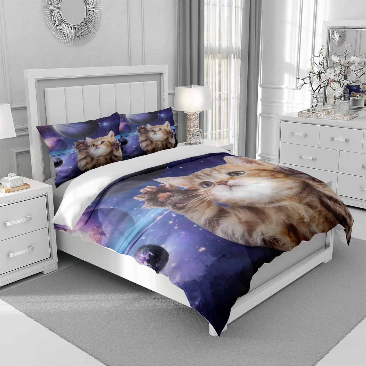 Îngrijire și spălare: Îngrijirea ușoară și lavabilul mașinii fac ca acest set de capace de plapumă de lungă durată. Nu se estompează niciodată, îndepărtează acarienii. Poate fi rostogolită la căldură scăzută pentru a se usca. Ideal pentru stiluri de viață ocupate și moderne.
