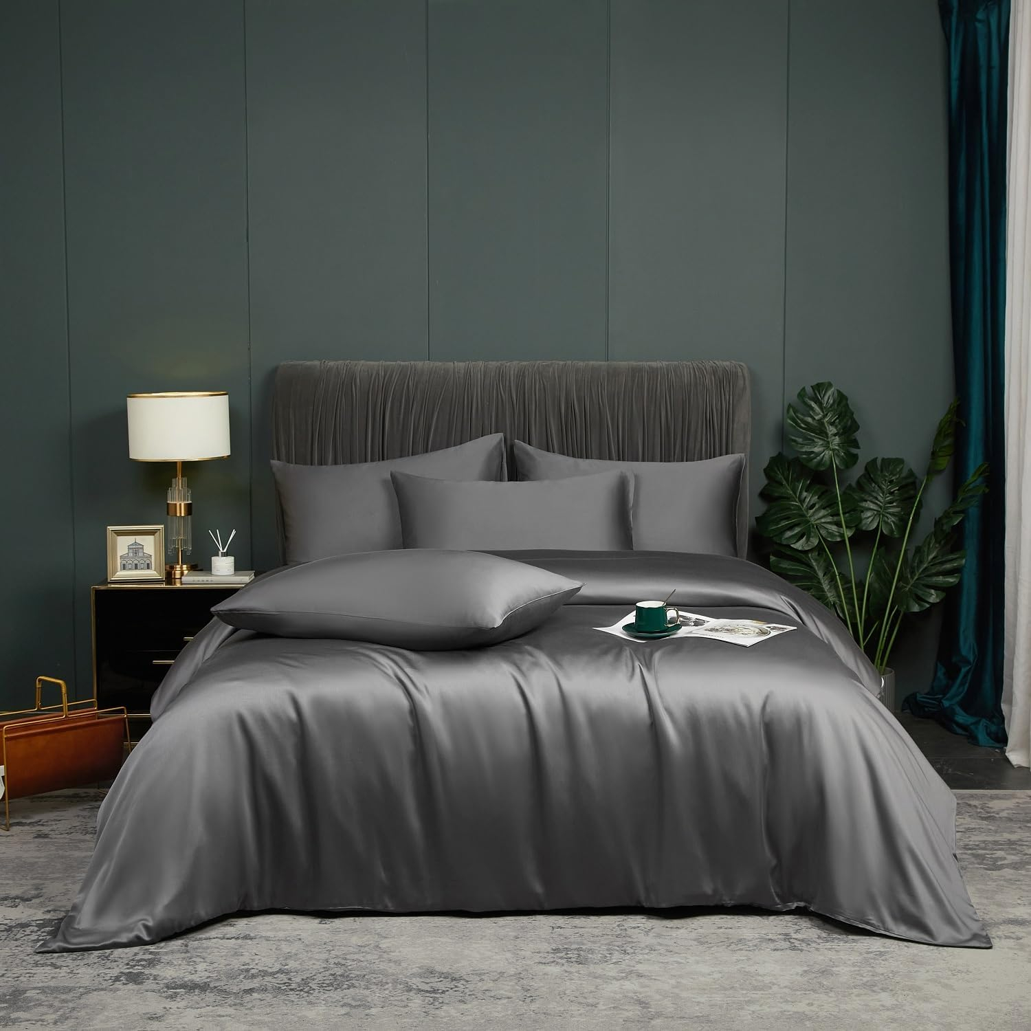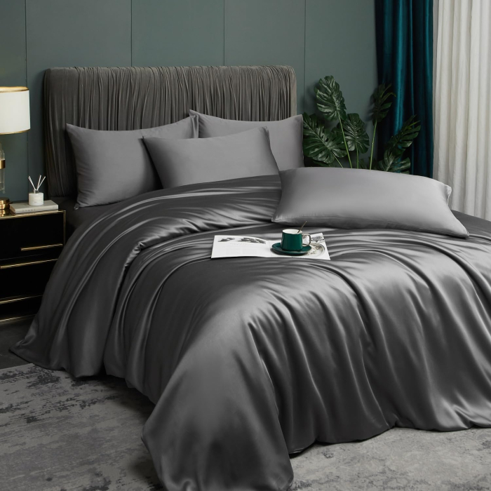 Lenjerie de pat din bambus, poliester, simplă, netedă, mătăsoasă, gri, pilota 220x240 cm cu 2 fete perini 65x65 cm