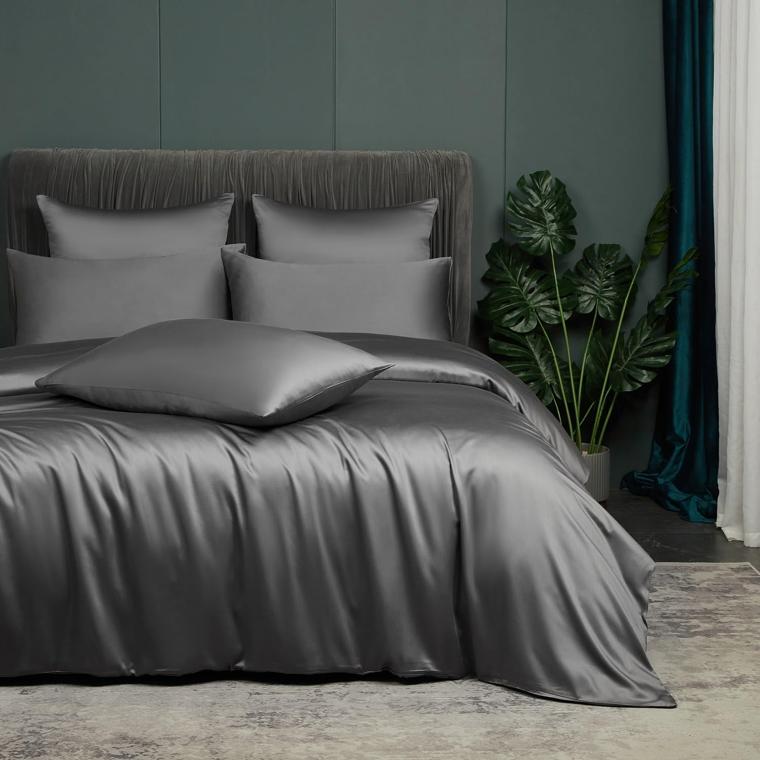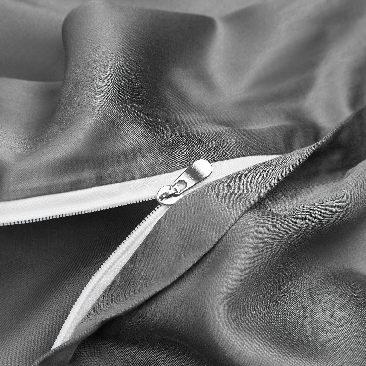 Lenjerie de pat din bambus, poliester, simplă, netedă, mătăsoasă, gri, pilota 260x240 cm cu 2 fete perini 65x65 cm