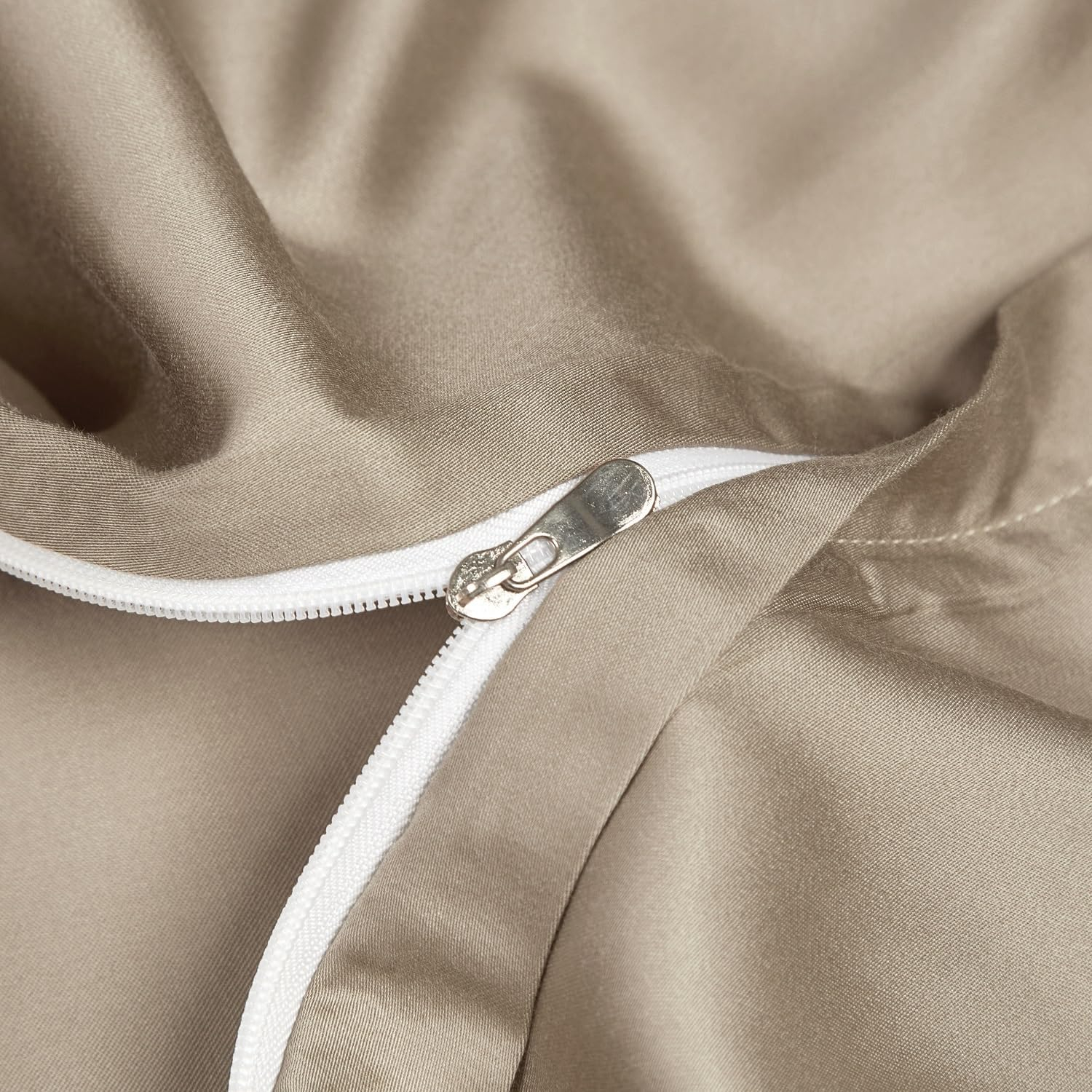 Lenjerie de pat din bambus, poliester, simplă, netedă, mătăsoasă, kaki, pilota 260x240 cm cu 2 fete perini 65x65 cm