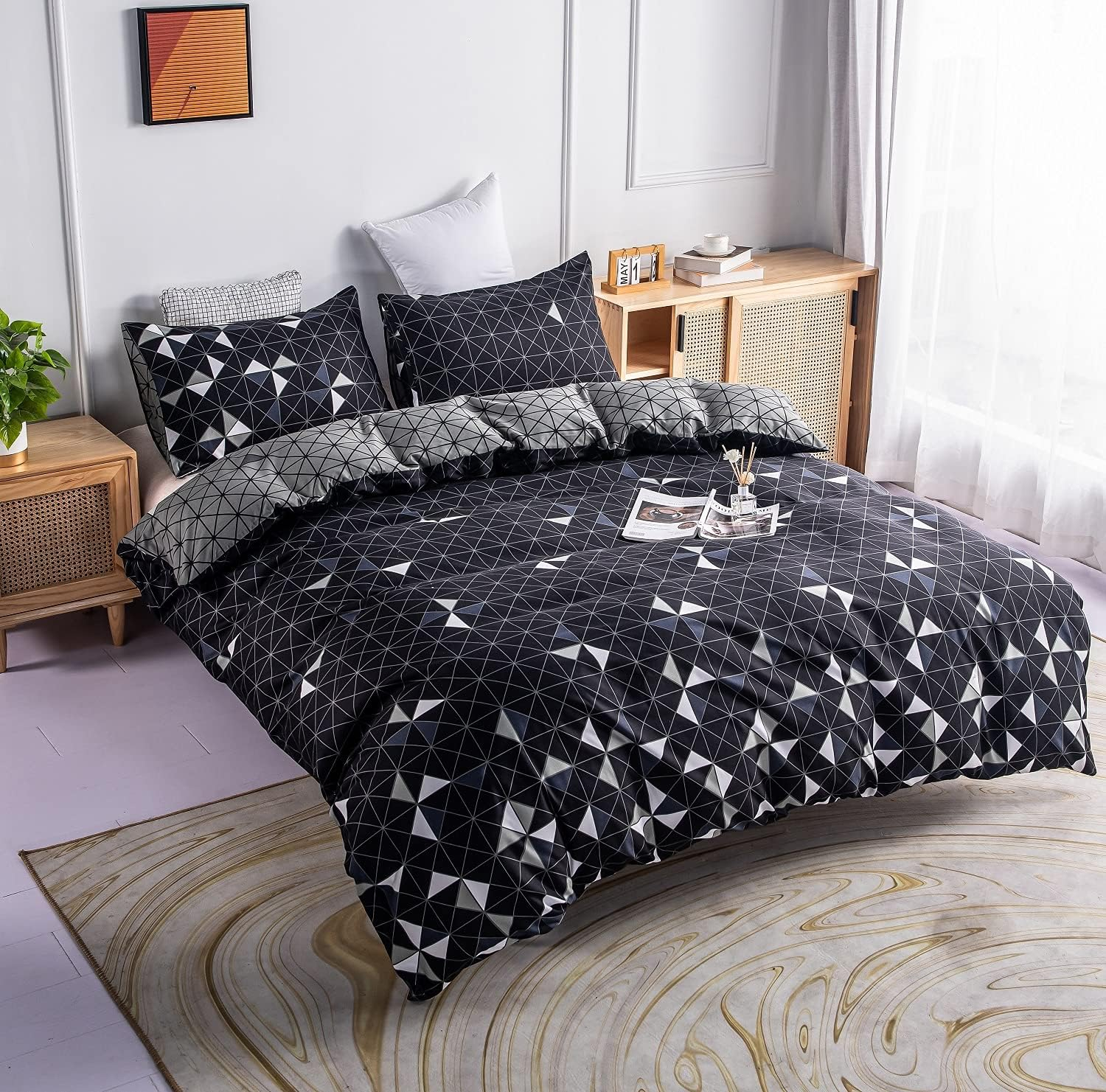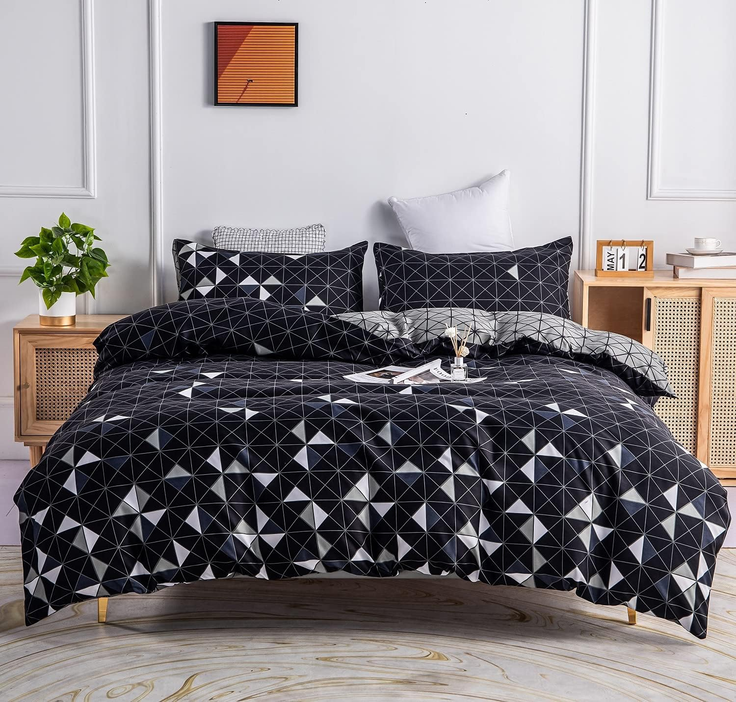 Lenjeria de pat din microfibră: lenjeria de pat geometrică modernă este fabricată din țesătură de microfibră de înaltă rezistență și ușoară de spălare cu diferite fețe duble. Setul de capace de plapumă este mai moale, respirabil și durabil.