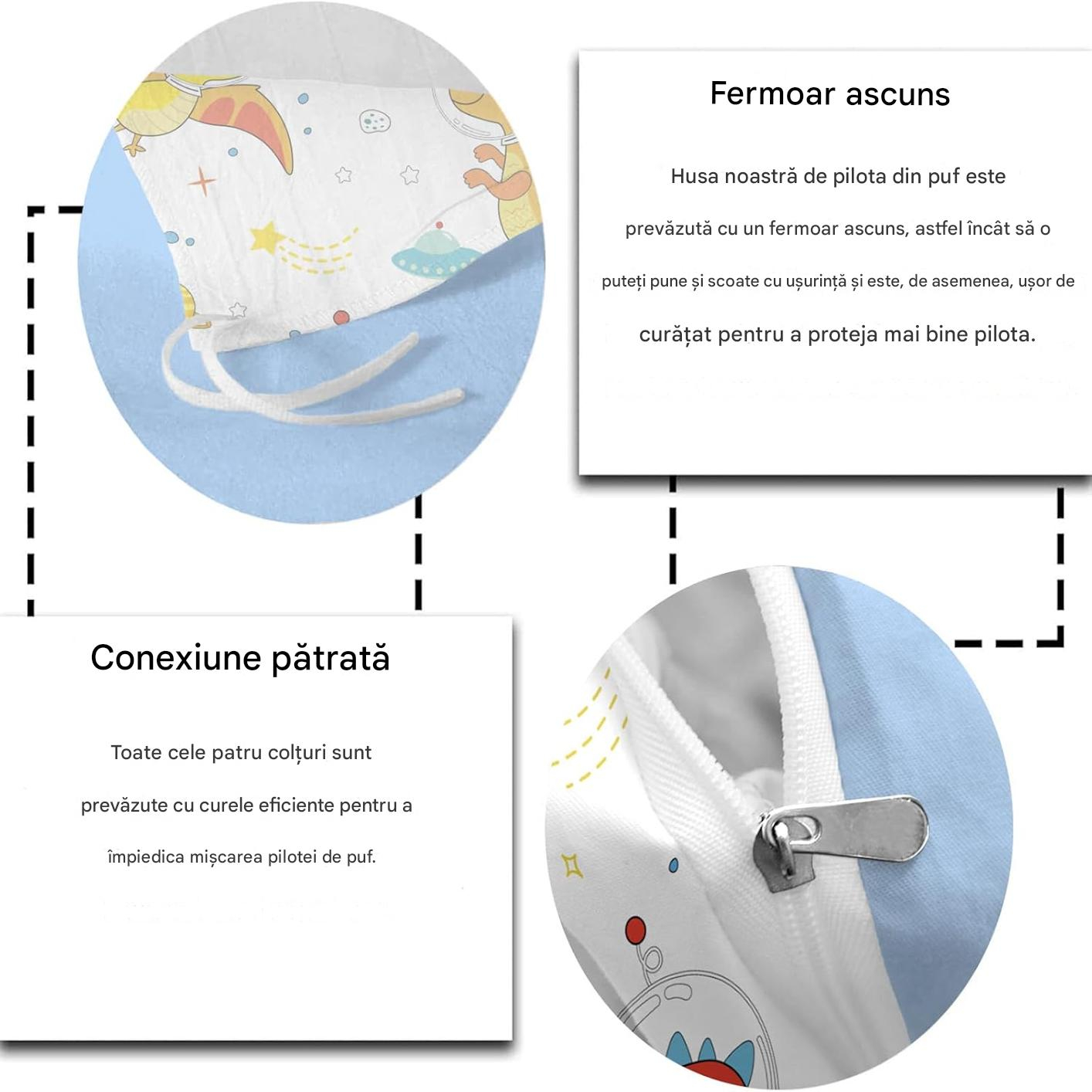 Lenjerie de pat pentru copii 2 piese-1 husa pilota 135x200 cm+ 1 husa perina 80x80 cm