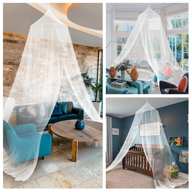 Siguranță materială: plasa de țânțari este fabricată din poliester de înaltă calitate și nu conține substanțe chimice iritante, moi și ușoare, respirabile și cântărește doar 170 g. Cortina de plasă are cea mai bună plasă, te protejează de țânțarii mușcați și muște. Plasele de țânțari pot fi folosite nu numai în interior, ci și în vacanță, camping sau grădină.Notă: Potrivit pentru 1,5m și 1,35m paturi largi, vă rugăm să măsurați patul înainte de cumpărare.