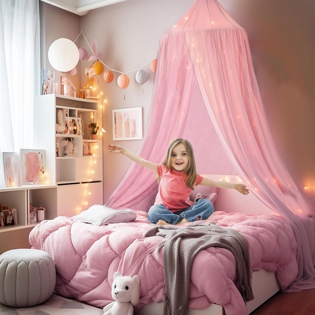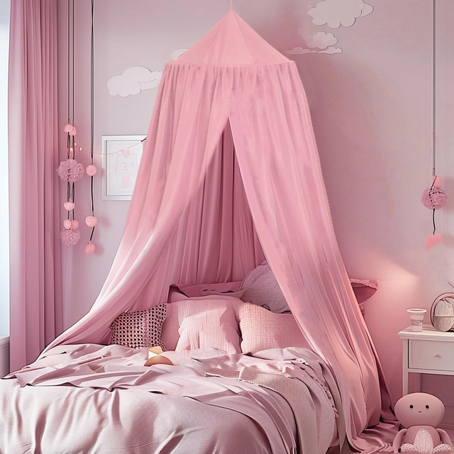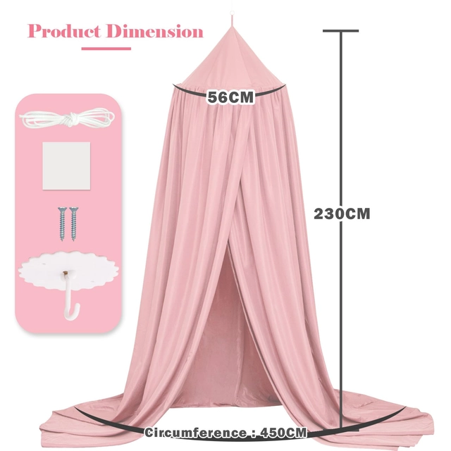 Baldachin SESAMIS pentru camera copiilor, baldachin pentru pat, pat pentru bebeluși, cameră pentru copii, 4 culori, plasă de țânțari rotundă suspendată, pentru camera copiilor și camera de joacă, 56 x 230 x 450 cm (roz)