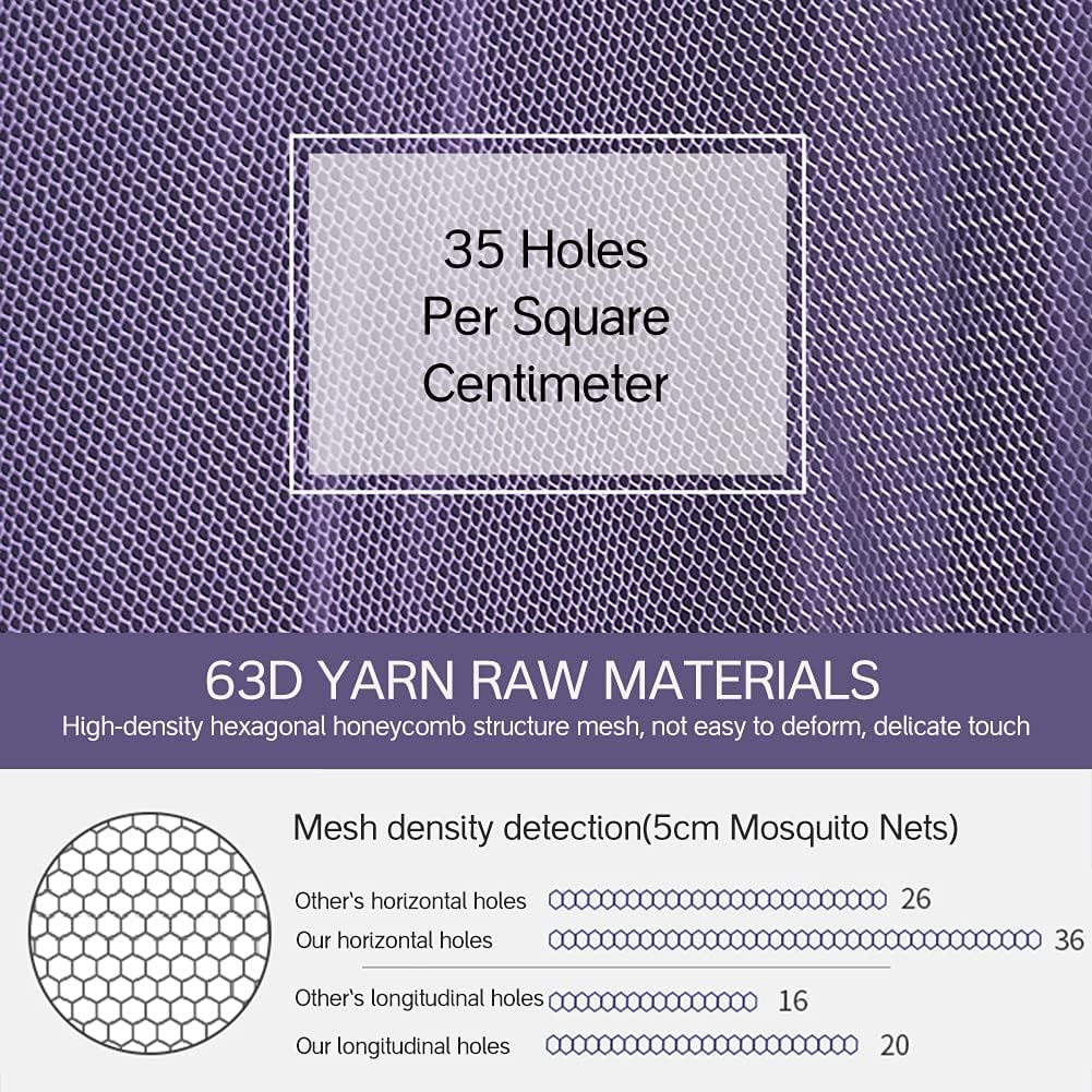 FRENETA CRIPTAT: Plasa noastră de țânțari are 35 de găuri pe metru pătrat pătrat, din rezistență ridicată și duritate, materii prime 63D, structură hexagonală de fagure de înaltă densitate, nu ușor de deformare, atingere delicată și efect de protecție anti-țână.