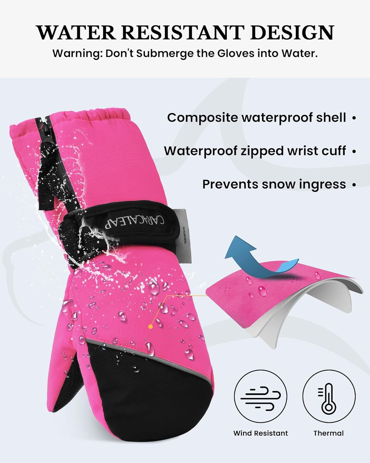 IZOLOF & BREATHABLE Mănușile noastre de zăpadă pentru băieți și fete dispun de o coajă de poliester cu densitate mare, combinată cu o membrană TUPU impermeabilă și respirabilă la suprafață. Această combinație vă protejează mâinile de umiditate, permițând în același timp transpirației și căldurii să scape, menținând mâinile uscate și confortabile în timpul plăcerii de schi.