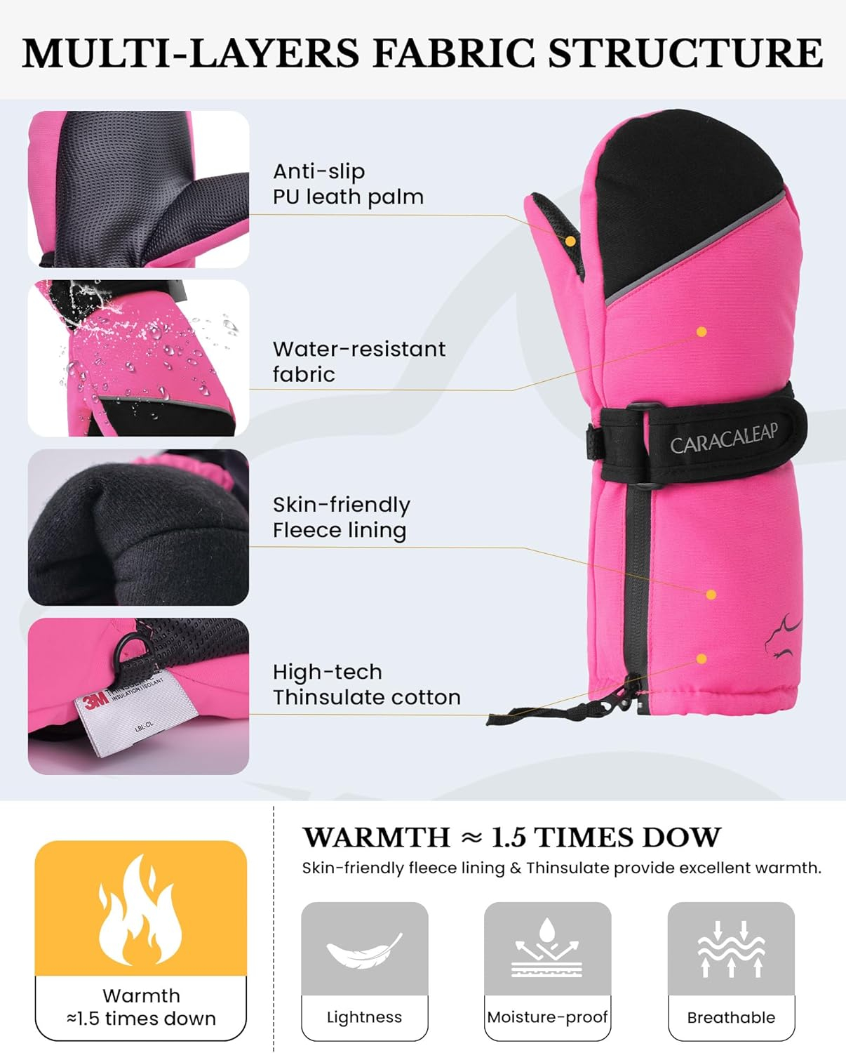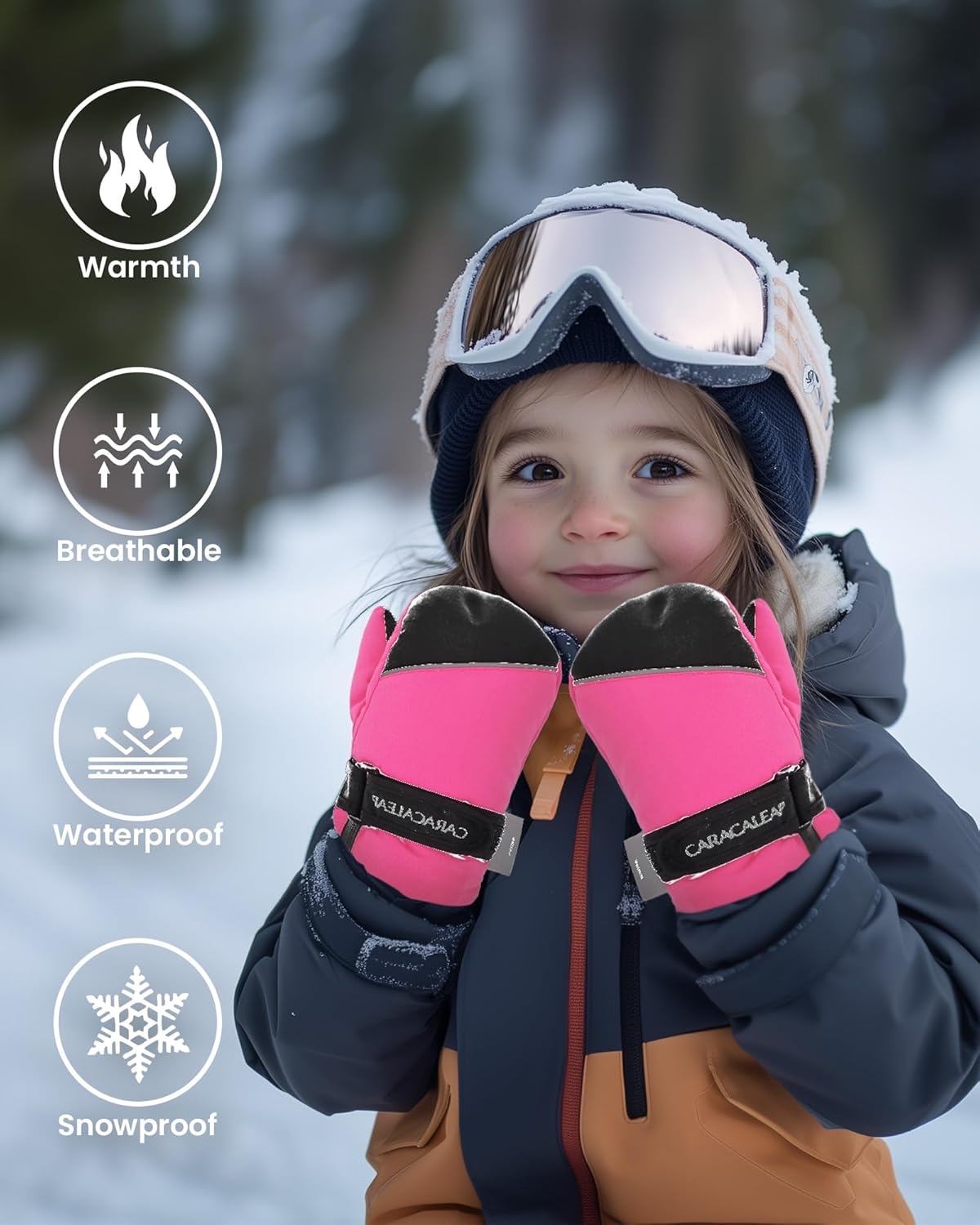 Manusi de iarna pentru copii 5-7 ani Roz, 1 deget