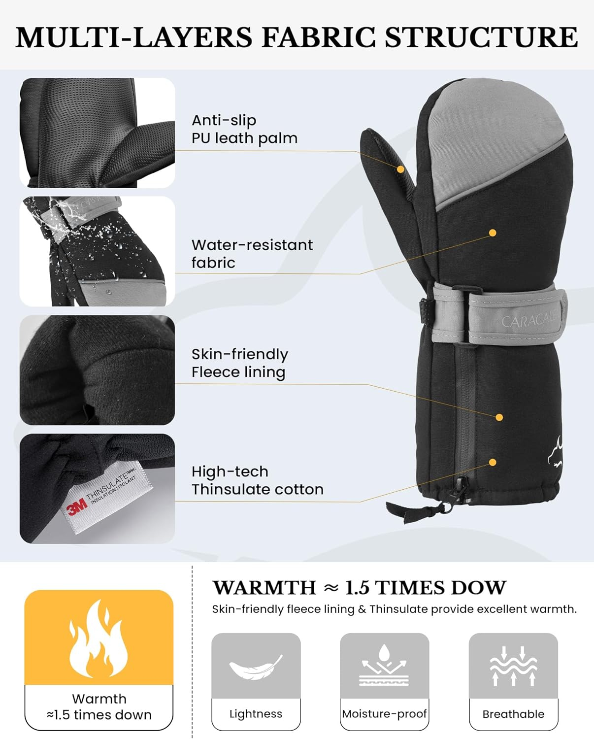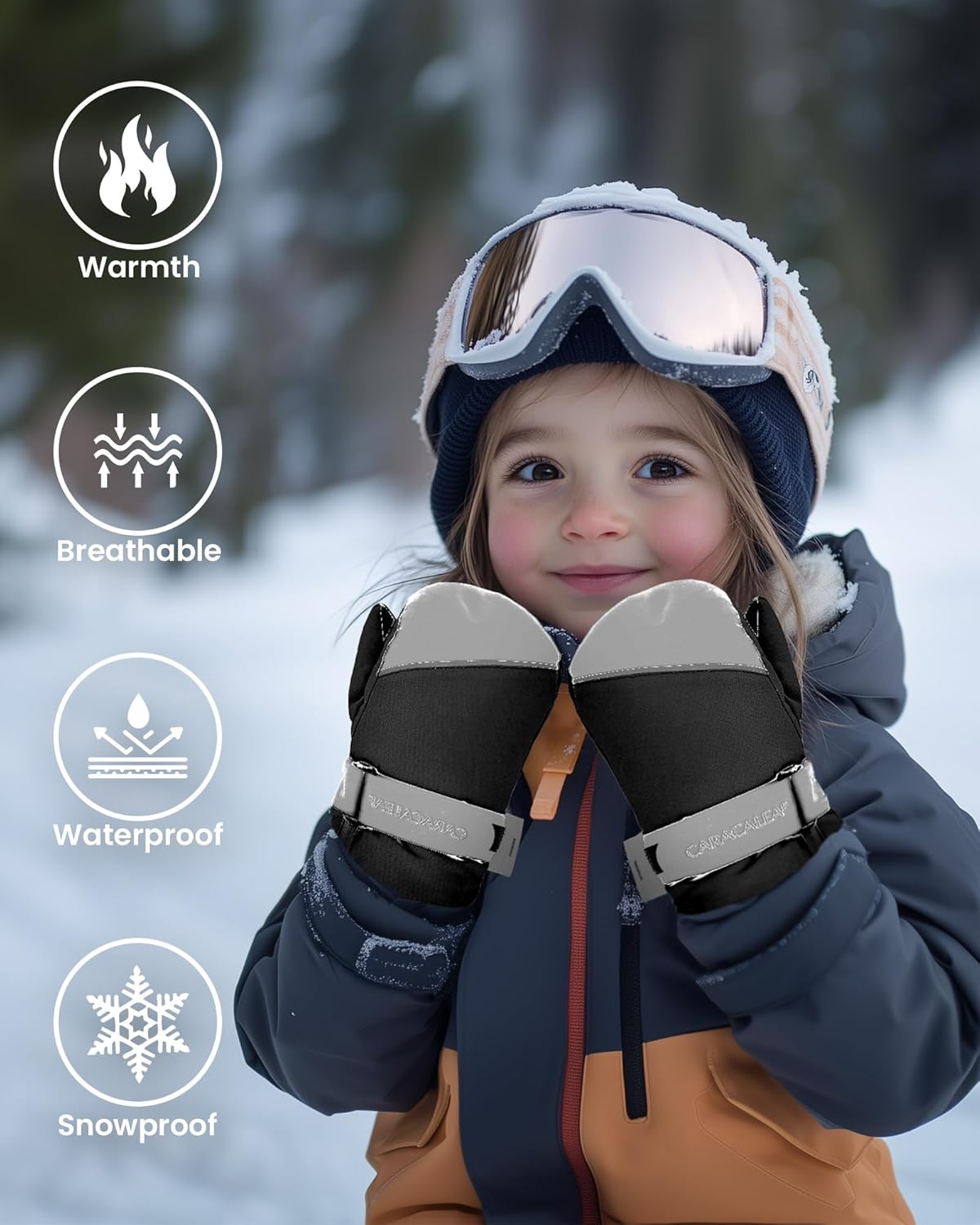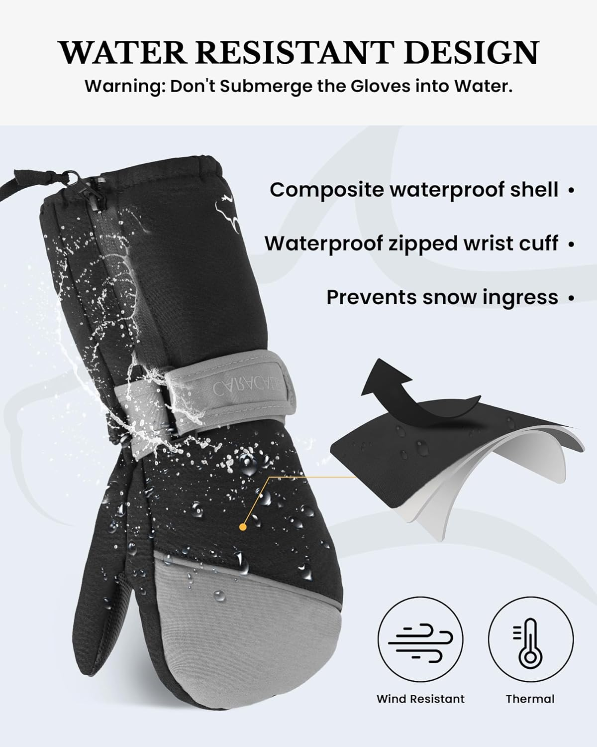 IZOLOF & BREATHABLE Mănușile noastre de zăpadă pentru băieți și fete dispun de o coajă de poliester cu densitate mare, combinată cu o membrană TUPU impermeabilă și respirabilă la suprafață. Această combinație vă protejează mâinile de umiditate, permițând în același timp transpirației și căldurii să scape, menținând mâinile uscate și confortabile în timpul plăcerii de schi.