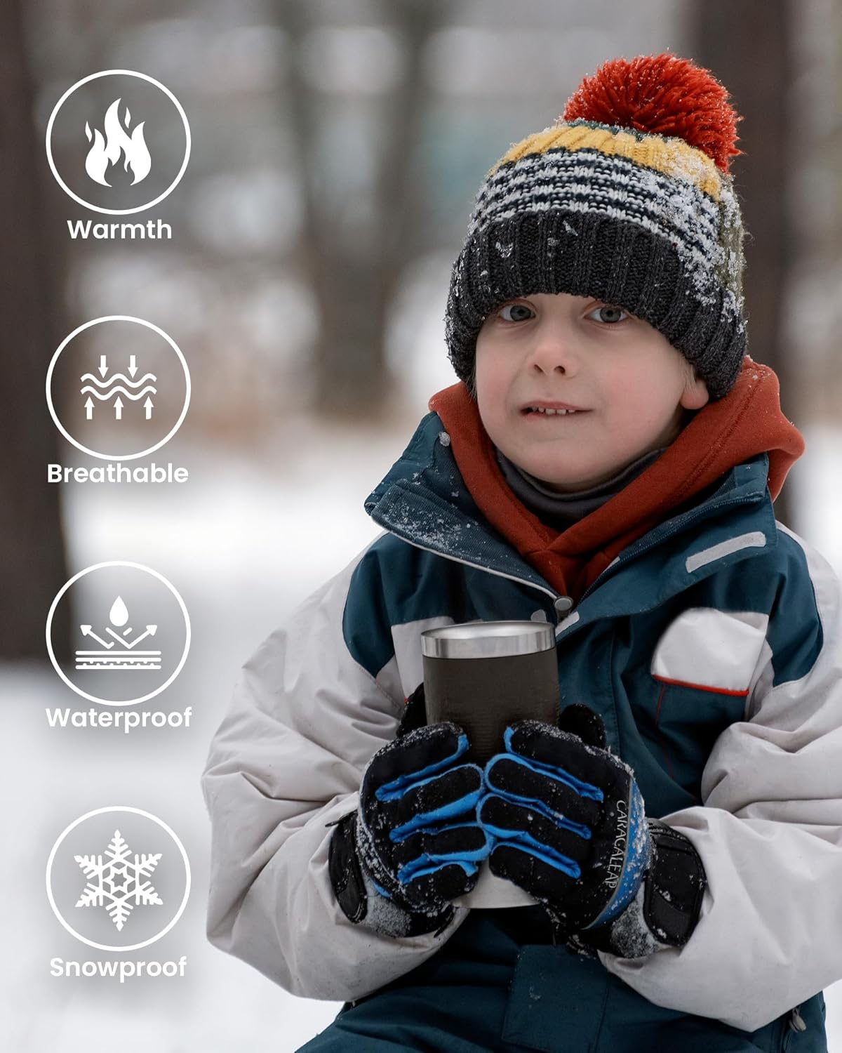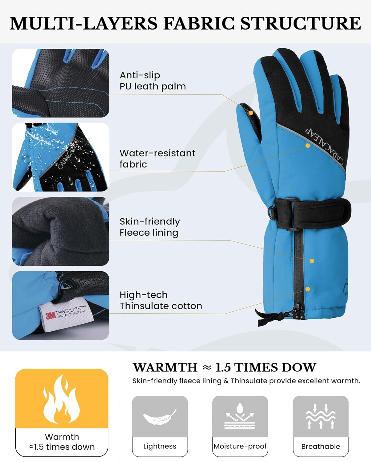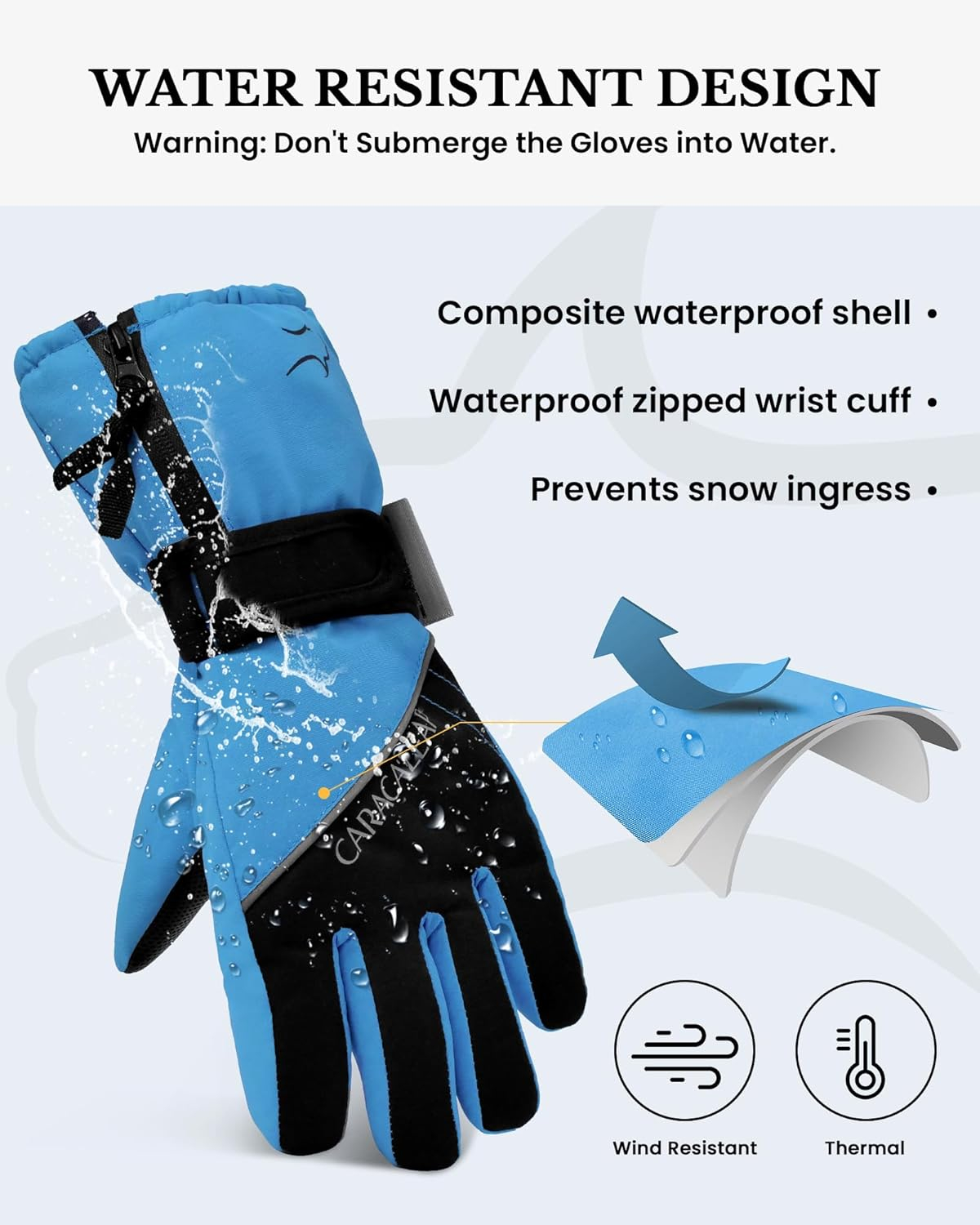 IZOLOF & BREATHABLE Mănușile noastre de zăpadă pentru băieți și fete dispun de o coajă de poliester cu densitate mare, combinată cu o membrană TUPU impermeabilă și respirabilă la suprafață. Această combinație vă protejează mâinile de umiditate, permițând în același timp transpirației și căldurii să scape, menținând mâinile uscate și confortabile în timpul plăcerii de schi.