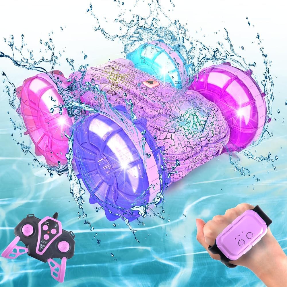 Mașinuta amfibie remote control bratara si telecomanda, impermeabila, cu lumini, violet