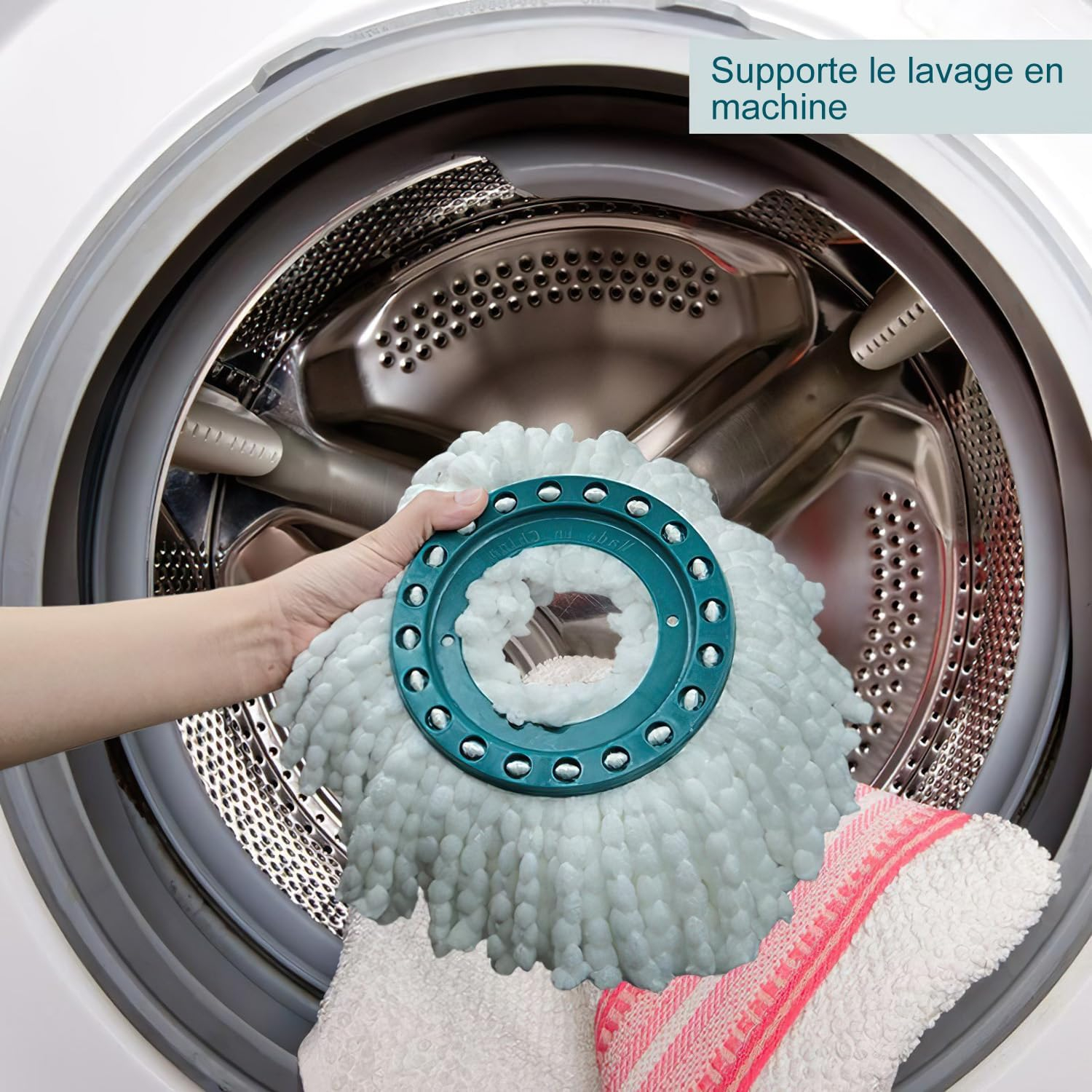 • Capetele noastre interschimbabile pentru mop au o textură moale, nu fac spumă, este foarte absorbant, curăță podele fără a lăsa urme și este lavabil la mașină. Sfat: Temperatura apei nu trebuie să depășească 60 ° C