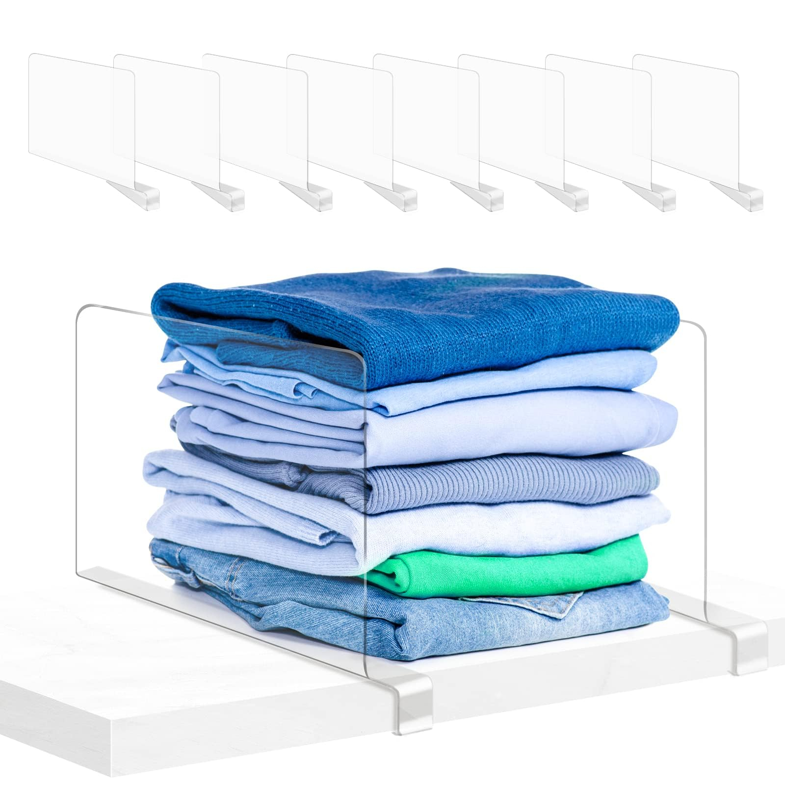 • Separator de raft acrilic - manoperă atentă: divizorul clar al raftului pentru dulapuri este făcut din acrilice de înaltă rezistență care nu se rupe cu ușurință. Ușor de curățat, utilizați doar un burete moale înmuiat în pasta de dinți pentru a șterge separatoarele dulapului. Iar acrilicul șlefuit clar din cristal arată foarte frumos și la modă. Designul modern și transparent permite separatorilor de geantă să se încadreze perfect în stilul casei tale, fără a fi deranjanți.