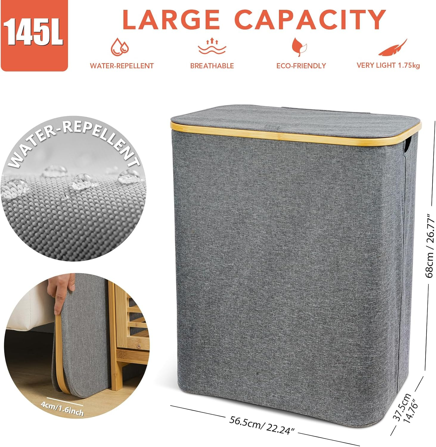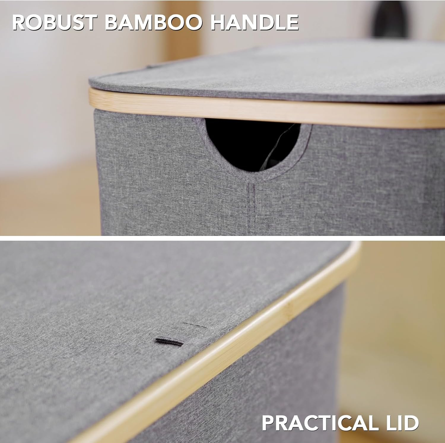 Coș de rufe XXL: Cu 140 de litri, cutia de rufe oferă o mulțime de spațiu pentru hainele murdare ale întregii familii sau pentru oricine se luptă cu cantități mari de rufe. În plus, designul capacului ajută la prevenirea răspândirii mirosurilor și la protejarea confidențialității. Datorită stabilității capacului, puteți plasa și niște haine direct pe capac.