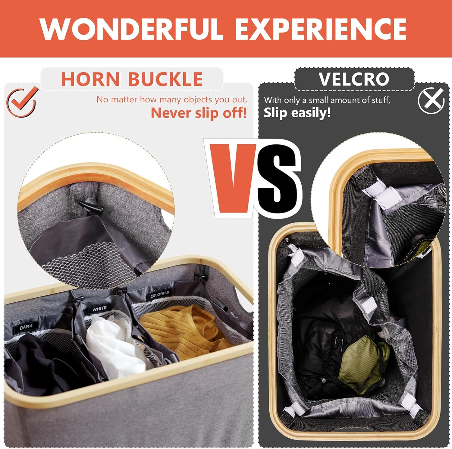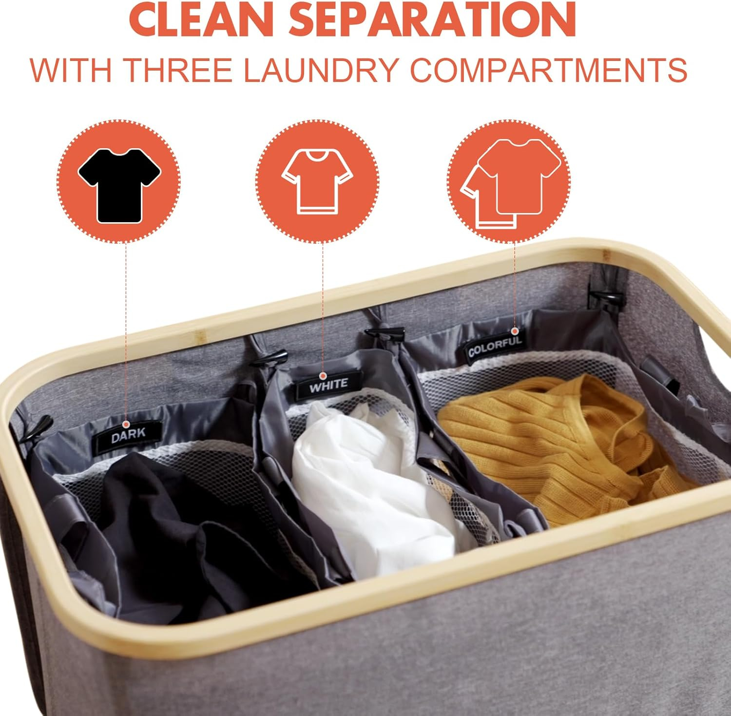 Ușor de utilizat: Cu coșul de rufe Southgate, veți obține trei pungi de rufe detașabile cu trei elemente de fixare DIY Velcro. Datorită subdiviziunilor coșului de rufe pentru rufe murdare, rufele întunecate, deschise și colorate pot fi sortate în avans și nu se amestecă.