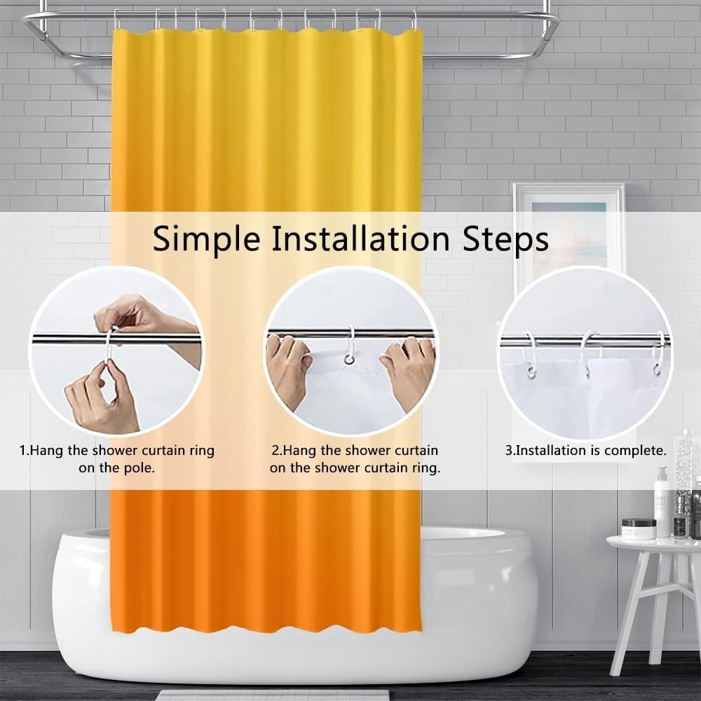 • Instalare ușoară: perdelele de duș de portocale se potrivesc cu ușurință în orice duș / cadă de dimensiuni standard și funcționează cu tije de duș drepte sau curbate. Cârligele în formă de C din ABS și ochiuri metalice rezistente la rugină vă pot ajuta să deschideți și să închideți perversiunea de duș fără probleme.