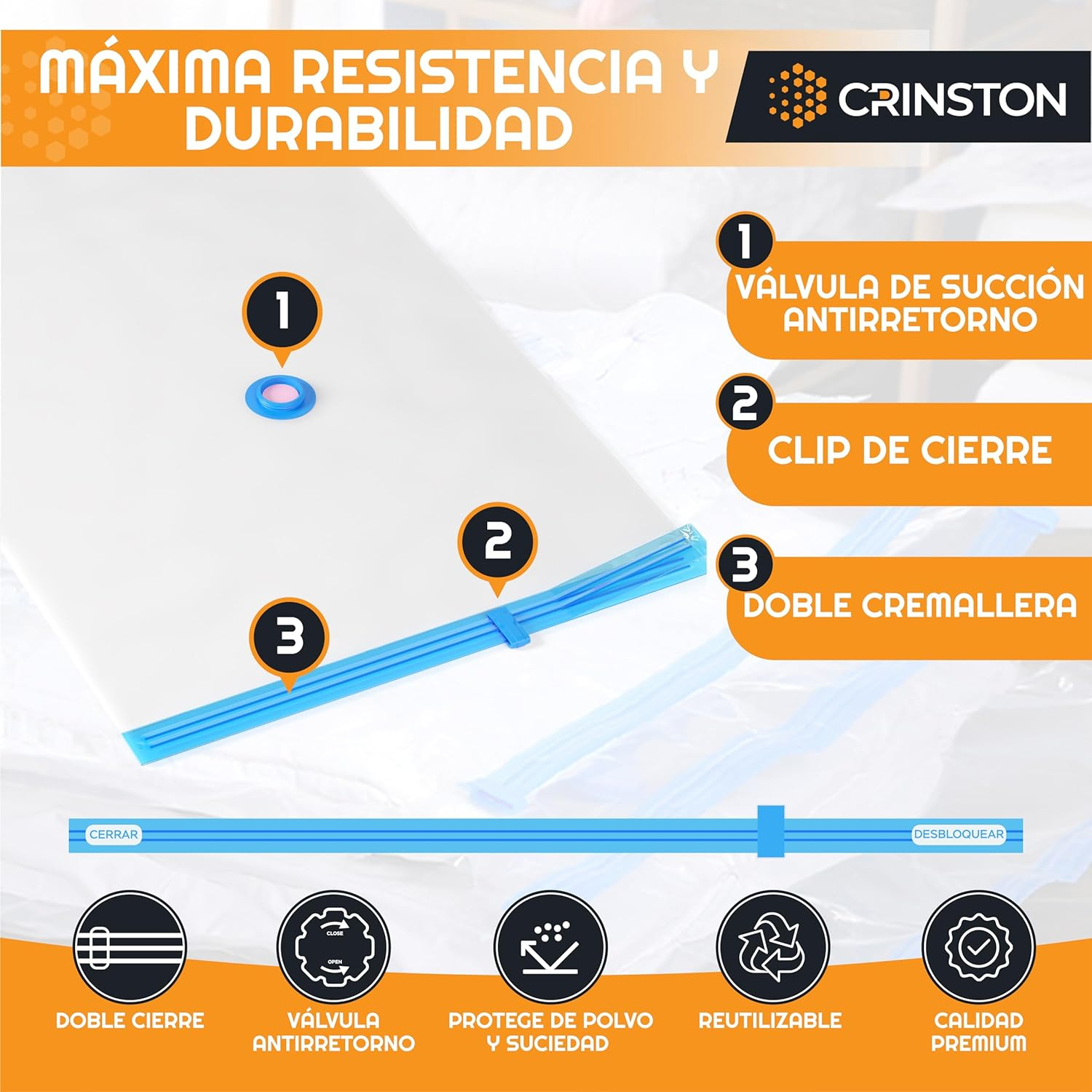 ✅ EASY TO UTILIZĂ: Pur și simplu introduceți hainele în pungi, închideți geanta folosind clemele de sigiliu dublu, apoi utilizați o pompă de vid sau un aspirator pentru a extrage aerul și pentru a închide capacul, este foarte simplu, deoarece nu va intra din nou în sacul datorită supapei sale de aer anti-returnare.