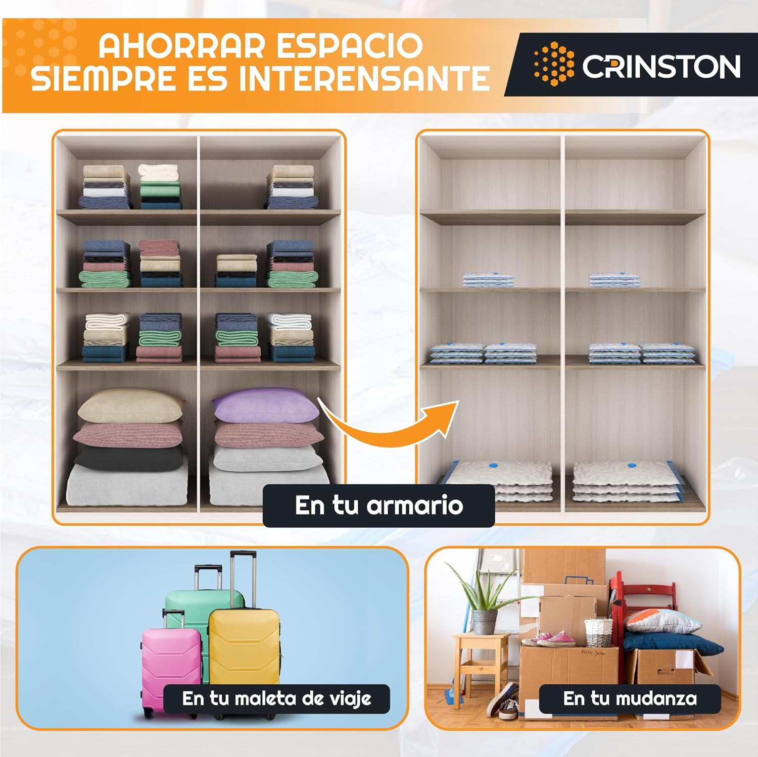 ✅ Luați SPAȚIU DE STOCARE: Pungile de acces pentru vid vă pot comprima rapid hainele, plapumele, paltoanele sau păturile voluminoase, pernele, cearșafurile, păturile, prosoapele, jucăriile și alte obiecte până la 80% din dimensiunea lor inițială. În plus, vă menține hainele curate și fără miros.