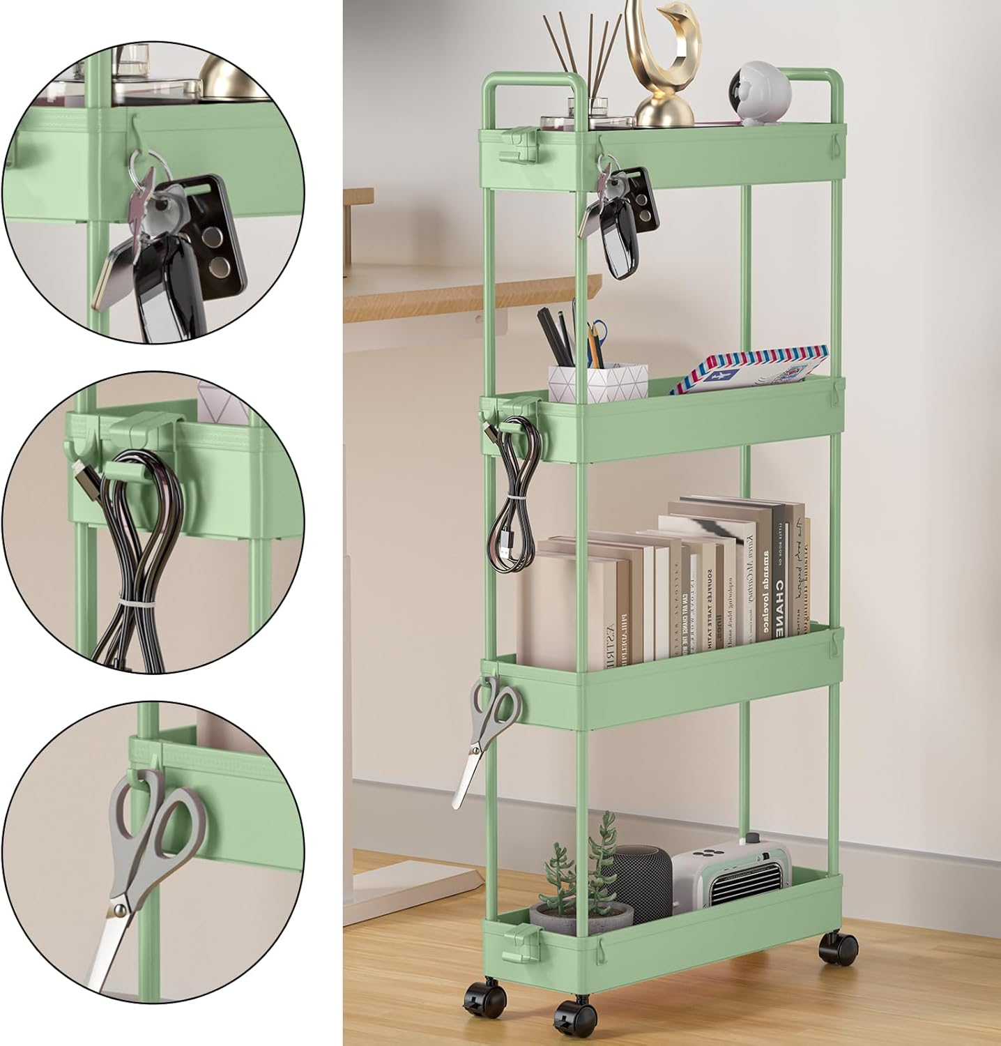 Carucior de depozitare verde cu 4 polite pentru baie, bucatarie 104.5x40x12.1 cm