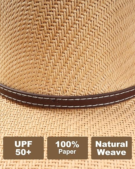 • Pălărie de piept de gât: Paie țesute manual cu 3 ochiuri de ventilație laterală păstrează răcoarea capului chiar și în căldura verii. O siluetă clasică de cowboy întâlnește confortul modern.