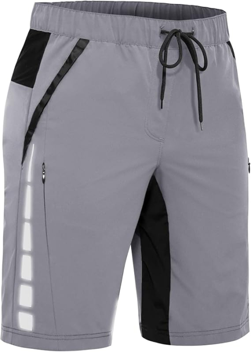 În funcție de drepturi de creanță Reflective Design Acestei pantaloni scurți de pe mountain bike ai acestor bărbați au fâșii reflectorizante de ambele părți, făcându-te mai sigur atunci când mergeți noaptea.