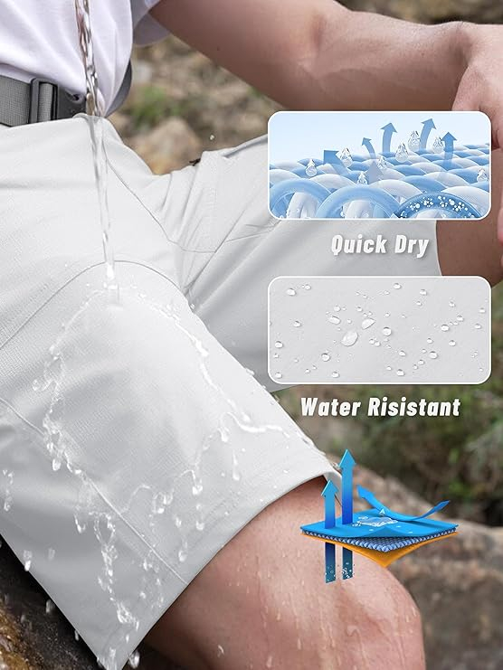 Caracteristici: pantaloni scurți de marfă ușor și confortabili, impermeabili și respirabili, scurți secțiți rapid pentru vară