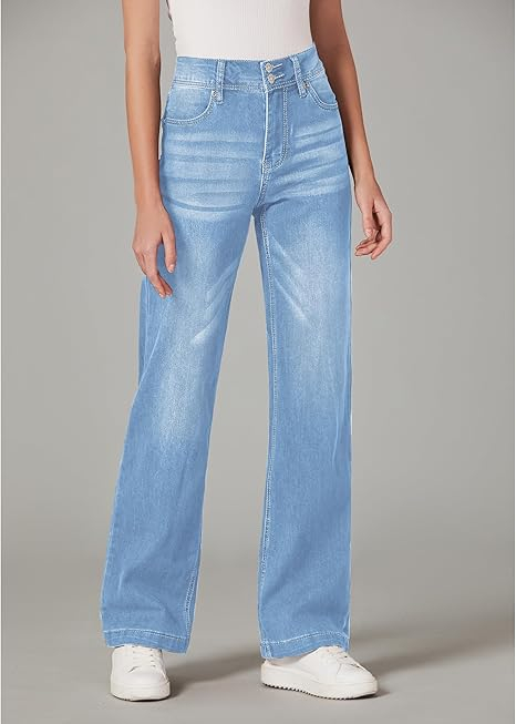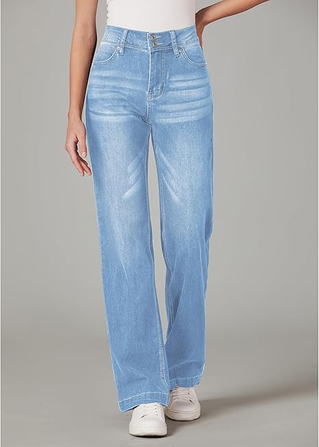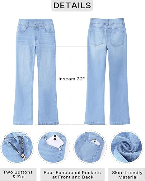 • Fabricate dintr-o țesătură din denim prietenoasă cu pielea și elastică, femeile blugi de mare creștere oferă atât confort, cât și stil. Datorită meșteșugului de spălare, culoarea fiecărui lot poate varia ușor.