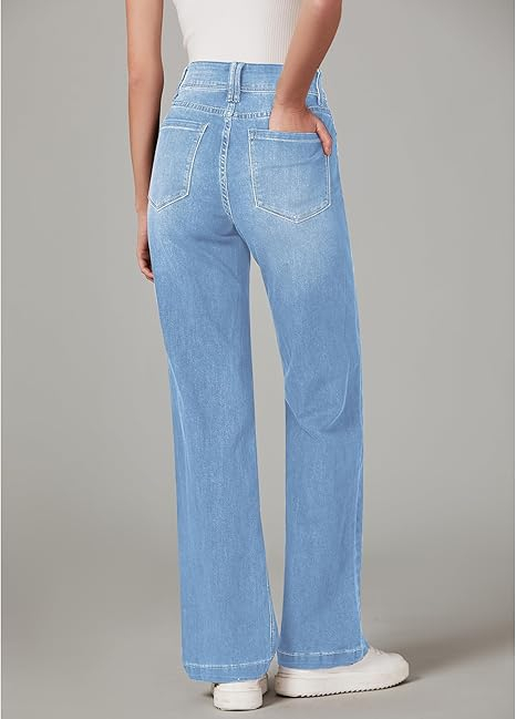 Blugi albastru deschis drepti pentru femei, cu buzunare, evazati jos S