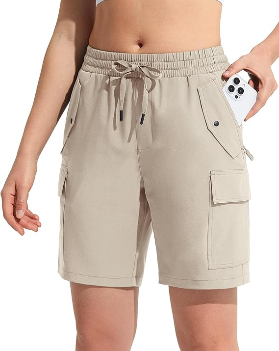 Pantaloni sport respirabili pentru femei, cu buzunare si talie elastica, scurti crem L