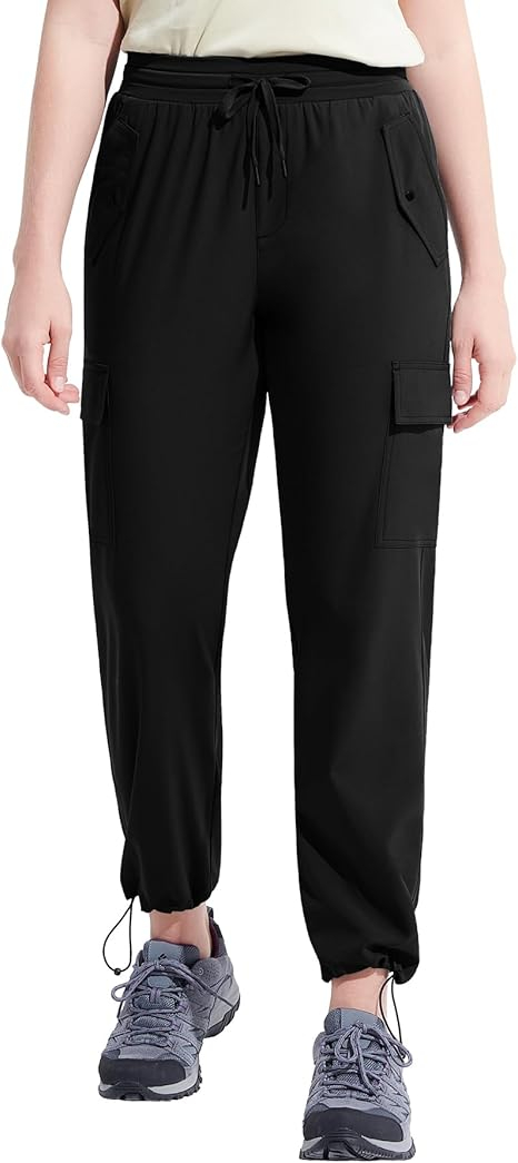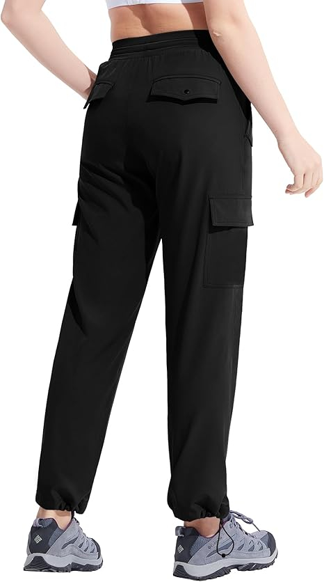 Pantaloni sport respirabili pentru femei, cu buzunare si talie elastica, lungi negri S