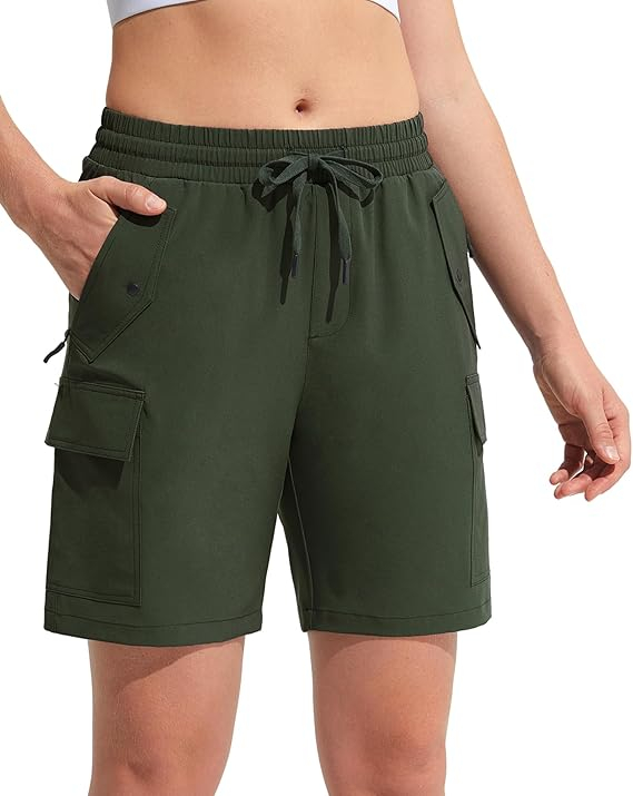 Pantaloni sport respirabili pentru femei, cu buzunare si talie elastica, scurti verzi S