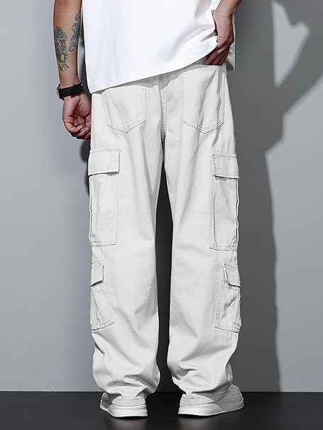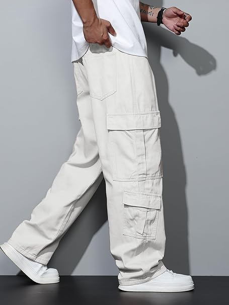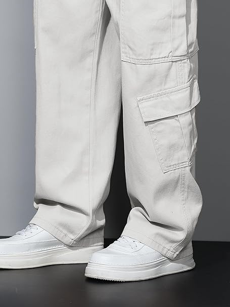 • ȚESĂTURĂ DURABILĂ DENIM - Fabricat din denim de înaltă calitate, acești pantaloni de marfă sunt construiți pentru a rezista la uzură și lacrimogenă.
