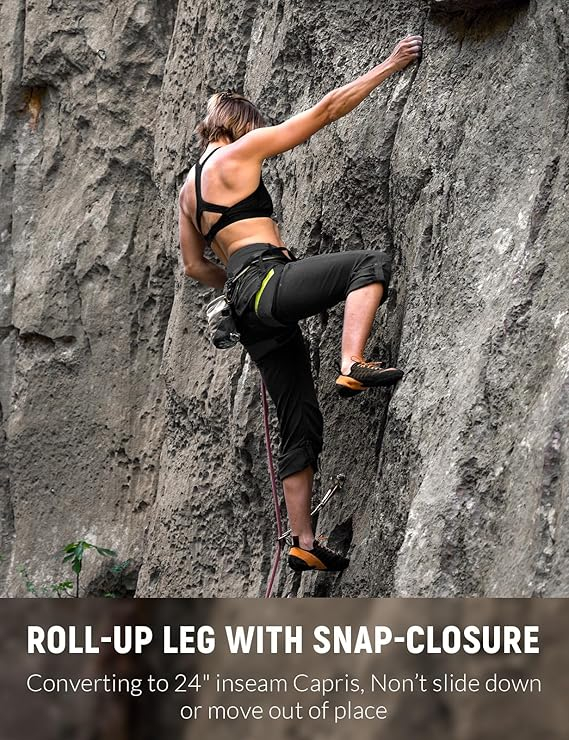 Două moduri de a purta: Pantalonii de drumeție pentru femei sunt un pantalon cu închidere, care nu alunecă în jos sau se schimbă și poate fi schimbat într-un capri de 61 cm, ceea ce reduce cantitatea de obiecte pe care trebuie să le împachetați.