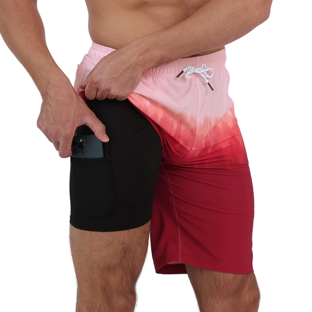 Pantaloni scurti de inot pentru barbatii, cu dublura, rosii S