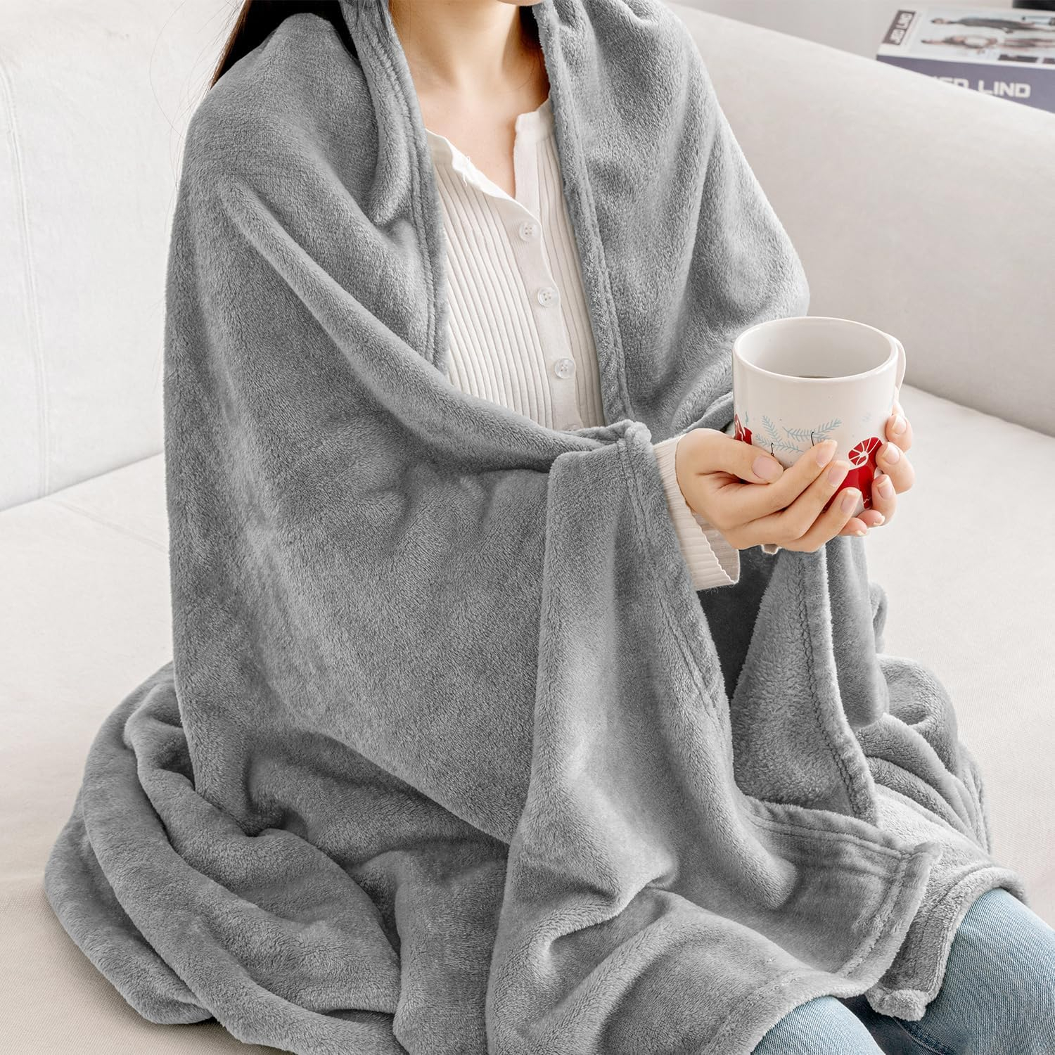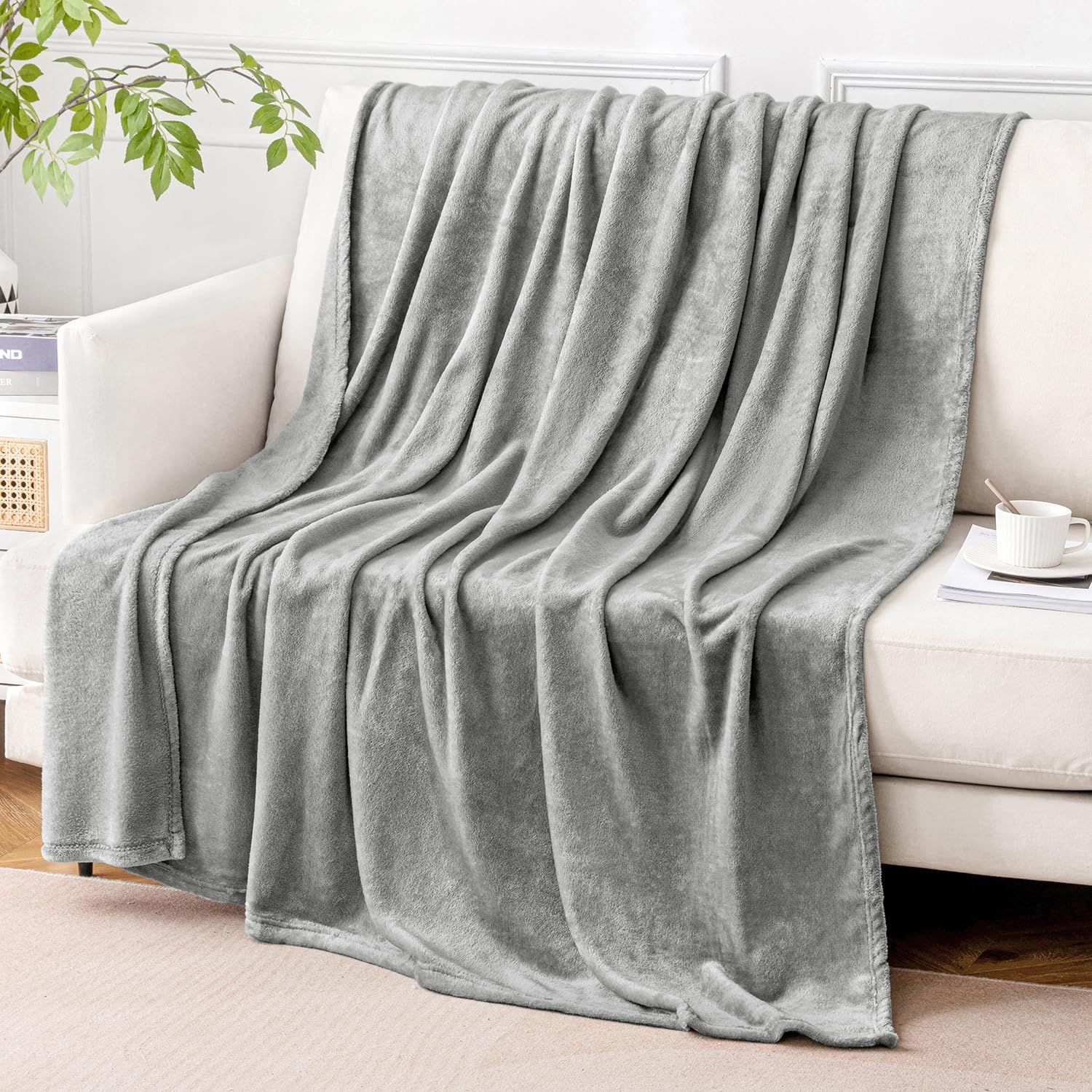Pătură pufoasă, fleece moale și caldă pentru canapea, gri125x150 cm