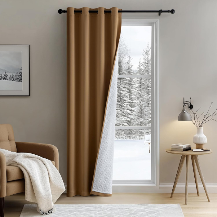 • Designul cu strat dublu face ca perdelele să fie atât frumoase, cât și practice, iar căptușeala umplută cu fibre din poliester îmbunătățește performanța perdauei împotriva frigului și a căldurii. În timpul iernii, perdelele termice protejează împotriva vânturilor reci și economisesc energie prin încetinirea ușoară a pierderii aerului cald din cameră. Aceste perdele de blackout permit, de asemenea, dormitorului dvs. să nu fie inundat de lumină dimineața devreme, făcându-vă să dormiți bine