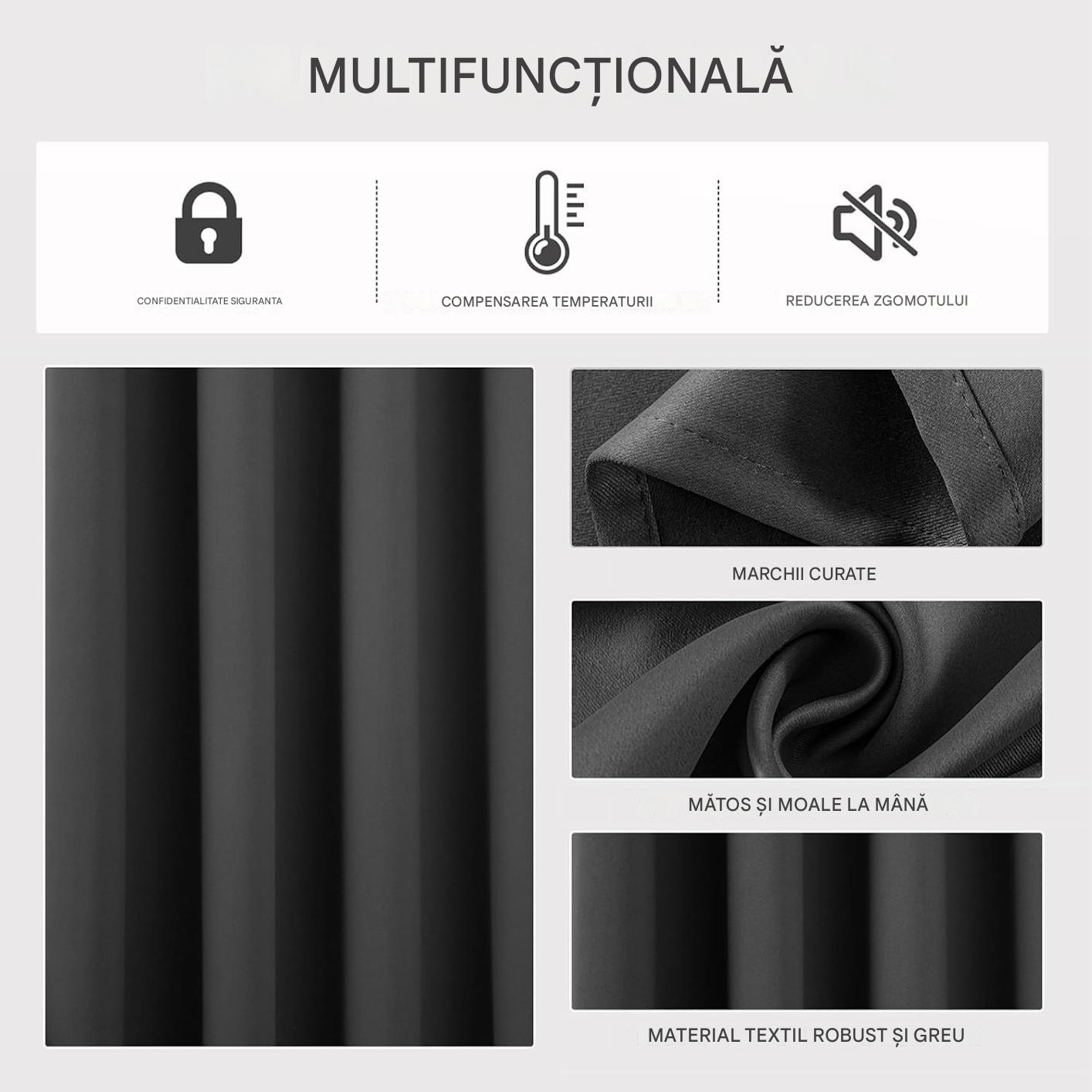 Perdele termice groase 240 cm inaltime, 135 cm latime, gri inchis, set 2 bucati