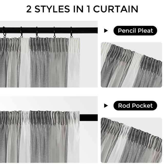 Design inovator: perdelele translucide realizate cu ruched fac instalarea mai ușoară. Puteți folosi inele și cârlige sau pur și simplu le puteți atârna direct pe tijă sau șină (Notă: fără inele sau cârlige în pachet)