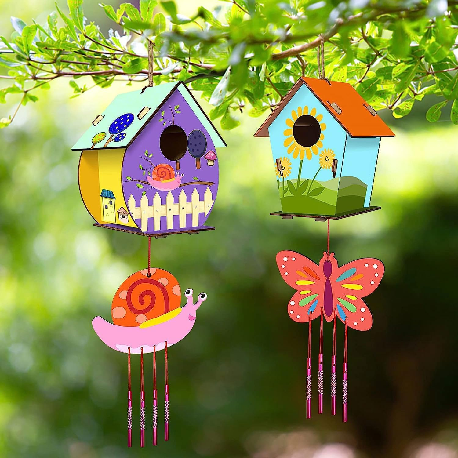 Set de casă de păsări din lemn DIY: veți primi 4 bucăți de hrănitoare de păsări mici din lemn neterminate, care au 4 stiluri diferite și fiecare stil conține câte 1 bucată, un set complet vă permite să vă construiți propria casă frumoasă de păsări din lemn.