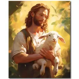 Pictura pe panza numerotata 40x50 cm, vopsea acrilica, pensule, suporti atarnare, "Isus cu mielul"